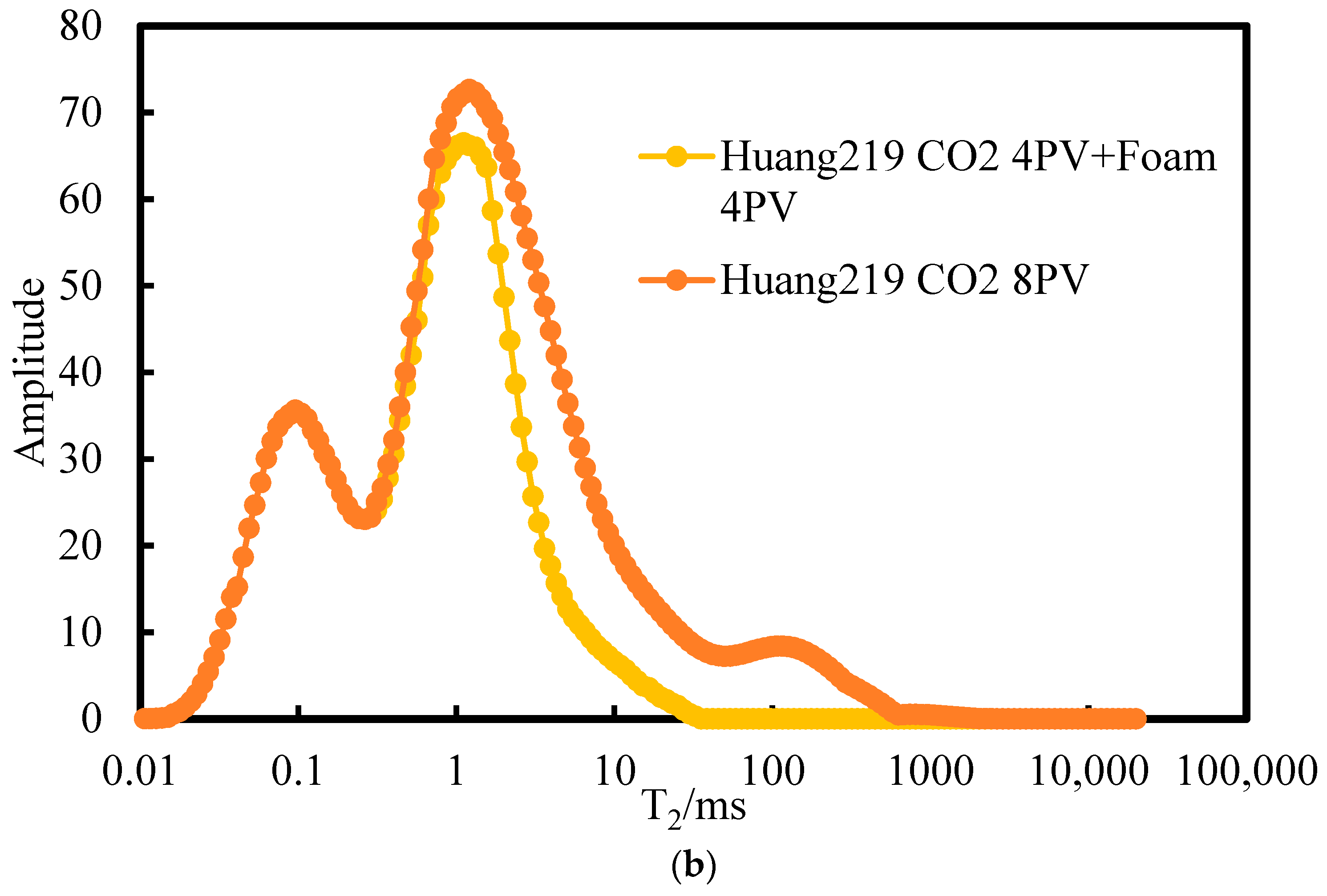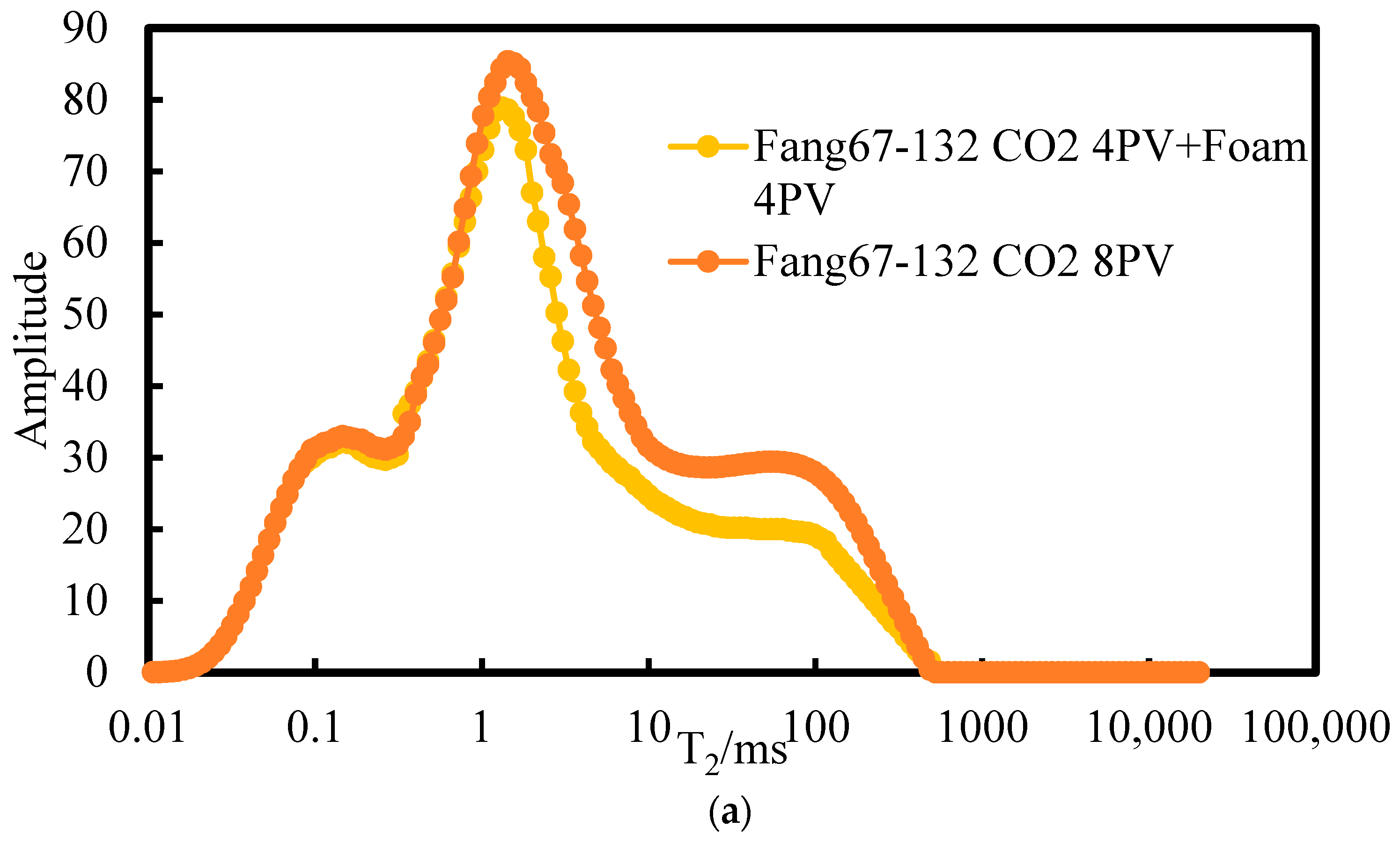 4.3. Core Flooding Experiments and NMR Measurement Analysis