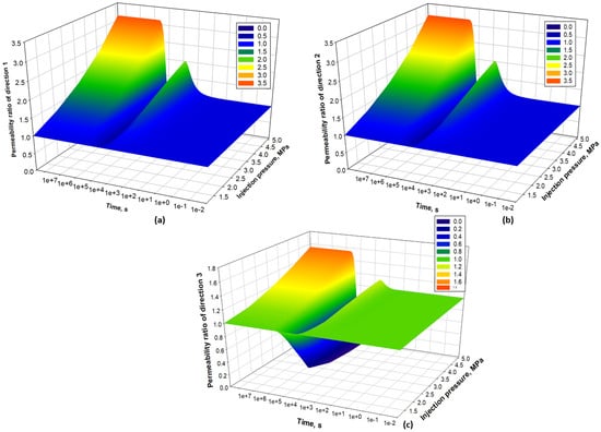 Permeability ratio surfaces of the three directions: (a) the permeability ratio surface of direction 1, (b) the permeability ratio surface of direction 2, and (c) the permeability ratio surface of direction 3.