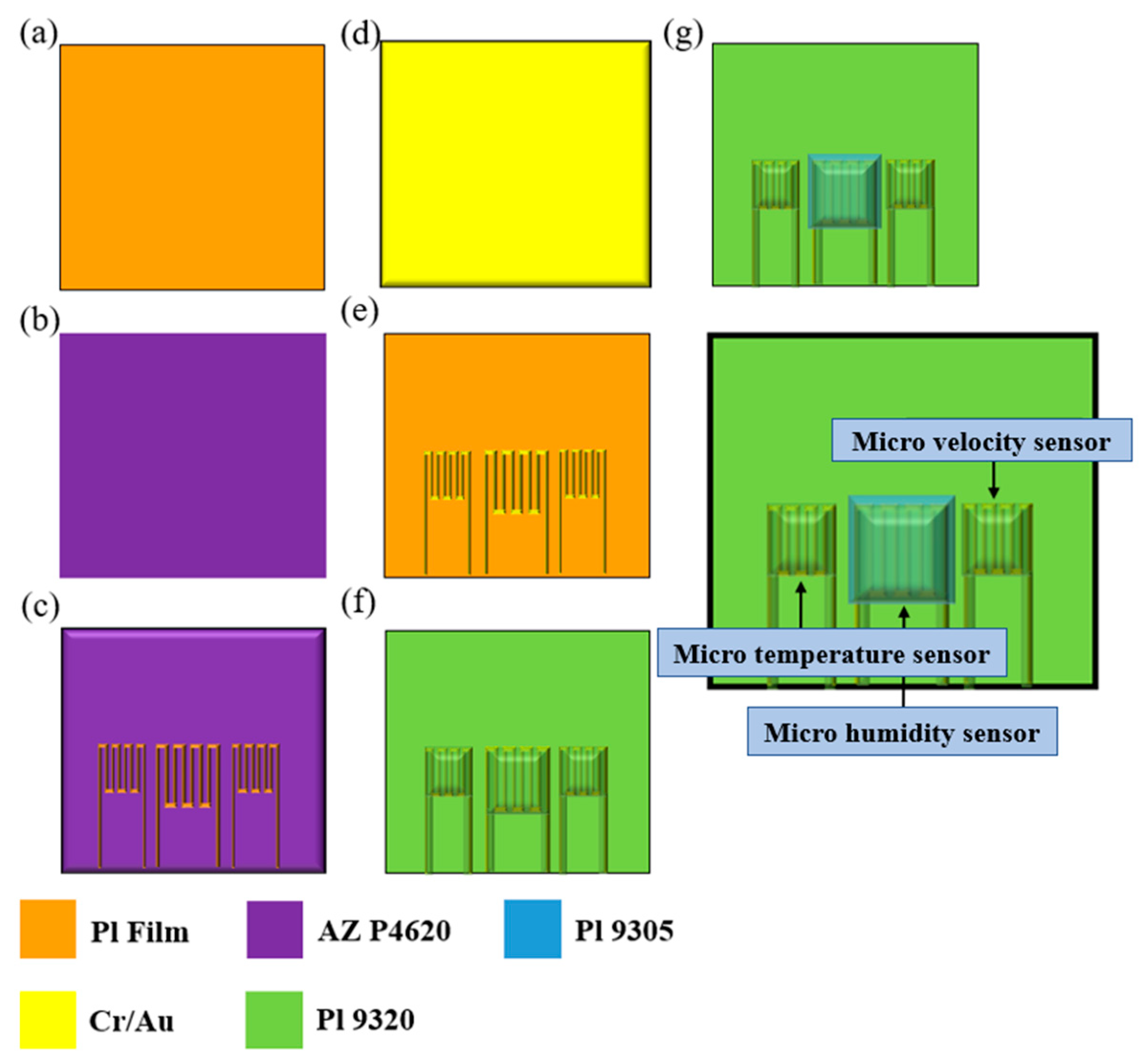 2.6. Process of Integrated Three-in-One Microsensor