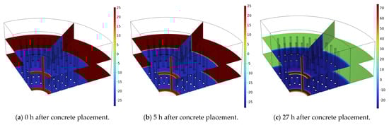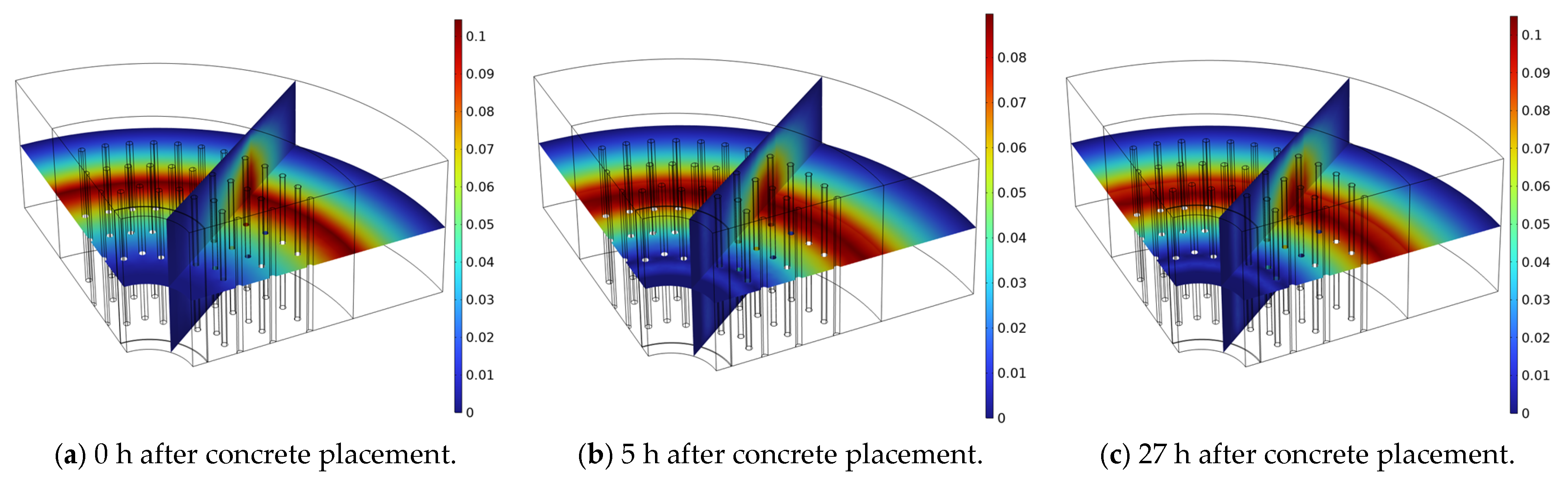 - Wang, Y.; Mao, X.; Wu, Q.; Cai, P.; Ye, M.; Yin, S. Numerical Analysis of Concrete Hydration Heat Impact on Frozen Soil Temperature around Cast-in-Place Piles. Materials 2024, 17, 4375. [Google Scholar] [CrossRef]