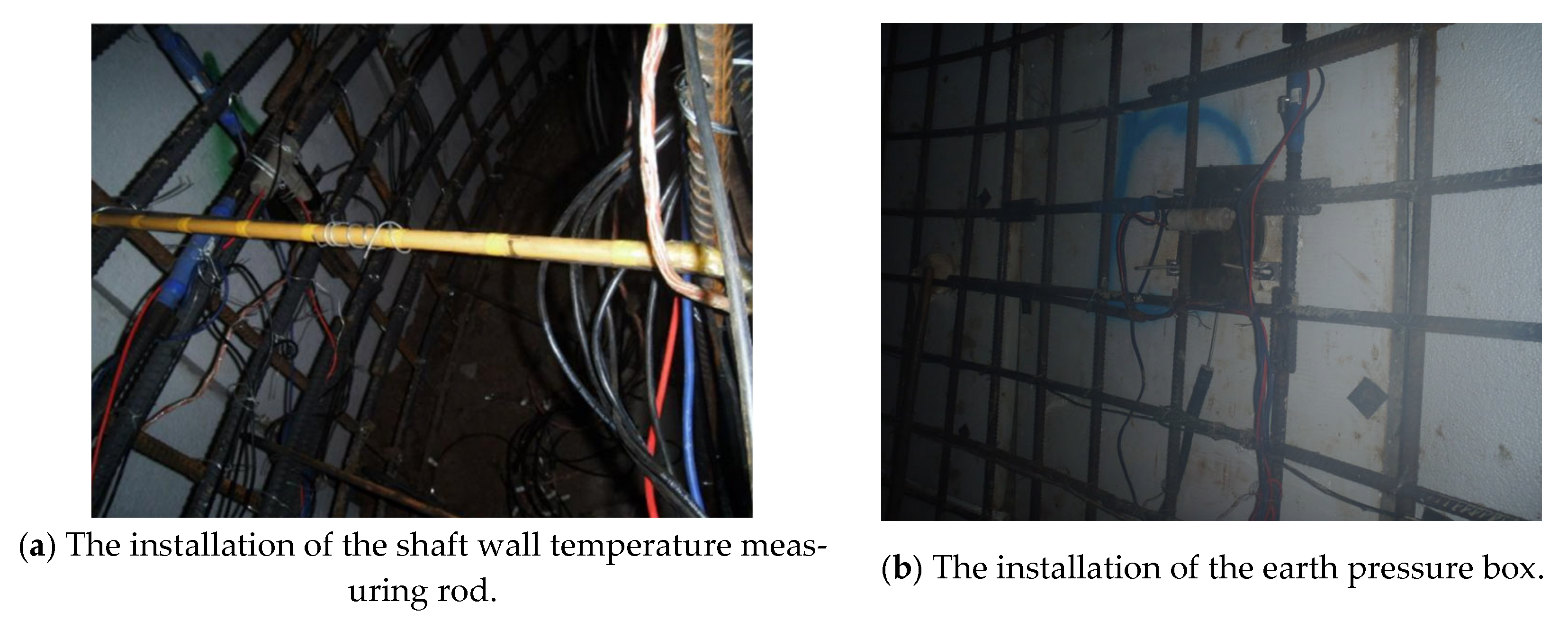 - Wu, T.; Zhou, X.; Zhang, L.; Zhang, X.; He, X.; Xu, Y. Theory and technology of real-time temperature field monitoring of vertical shaft frozen wall under high-velocity groundwater conditions. Cold Reg. Sci. Technol. 2021, 189, 103337. [Google Scholar] [CrossRef]