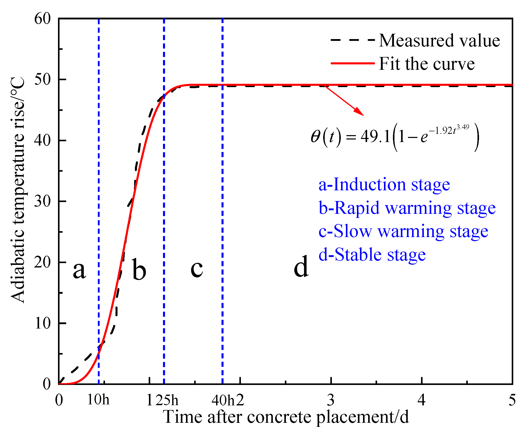- Del Savio, A.A.; La Torre Esquivel, D.; Carbajal, E.P.; de Andrade Silva, F. Experimental and analytical study of temperatures developed by the heat of hydration of high-strength self-compacting mass concrete. Case Stud. Constr. Mater. 2024, 22, e04098. [Google Scholar] [CrossRef]
