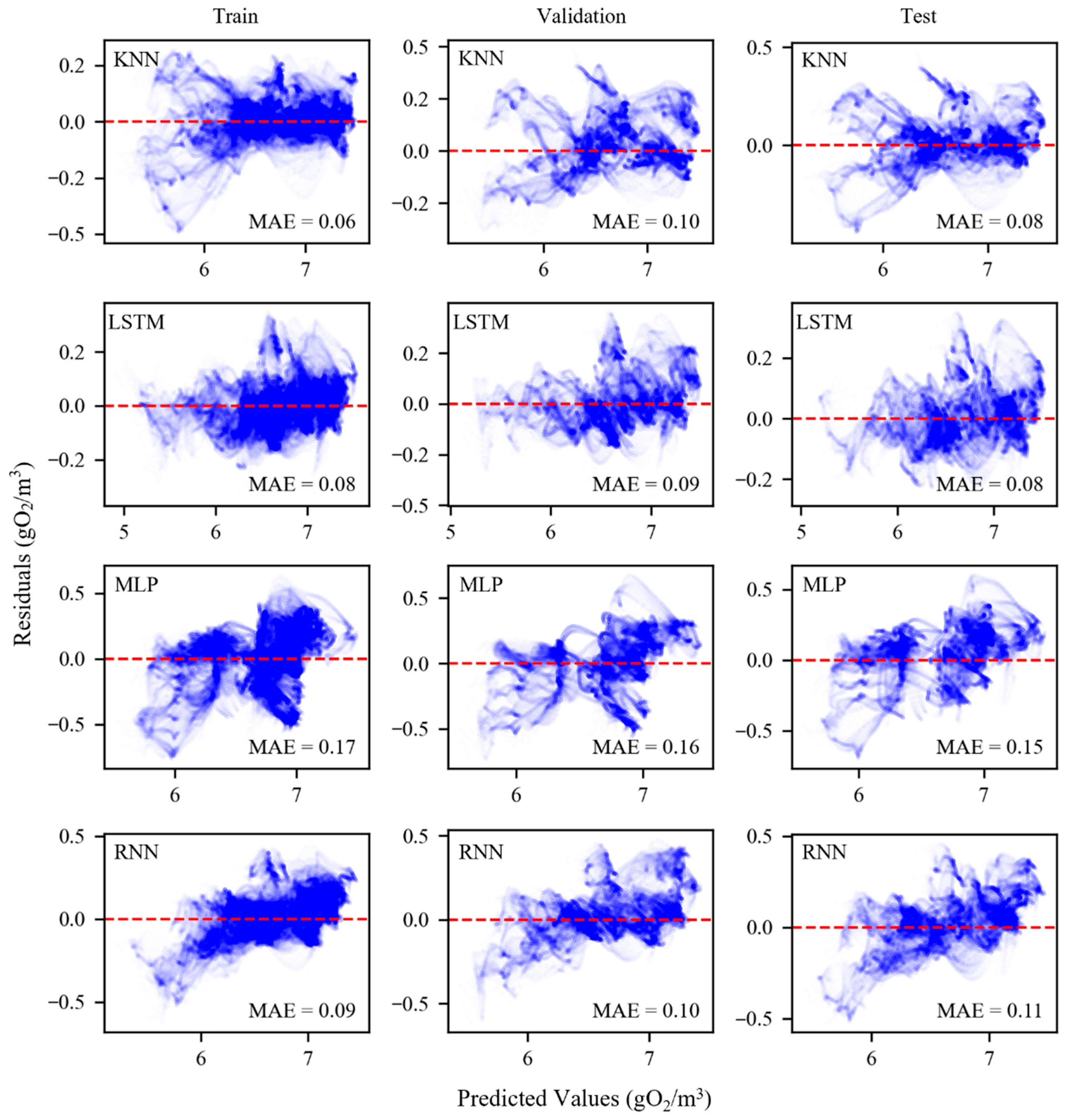 3, indicating superior fitting ability and prediction accuracy for dissolved oxygen concentration. In comparison, the performance of KNN, MLP, RNN, and LSTM models is slightly inferior.