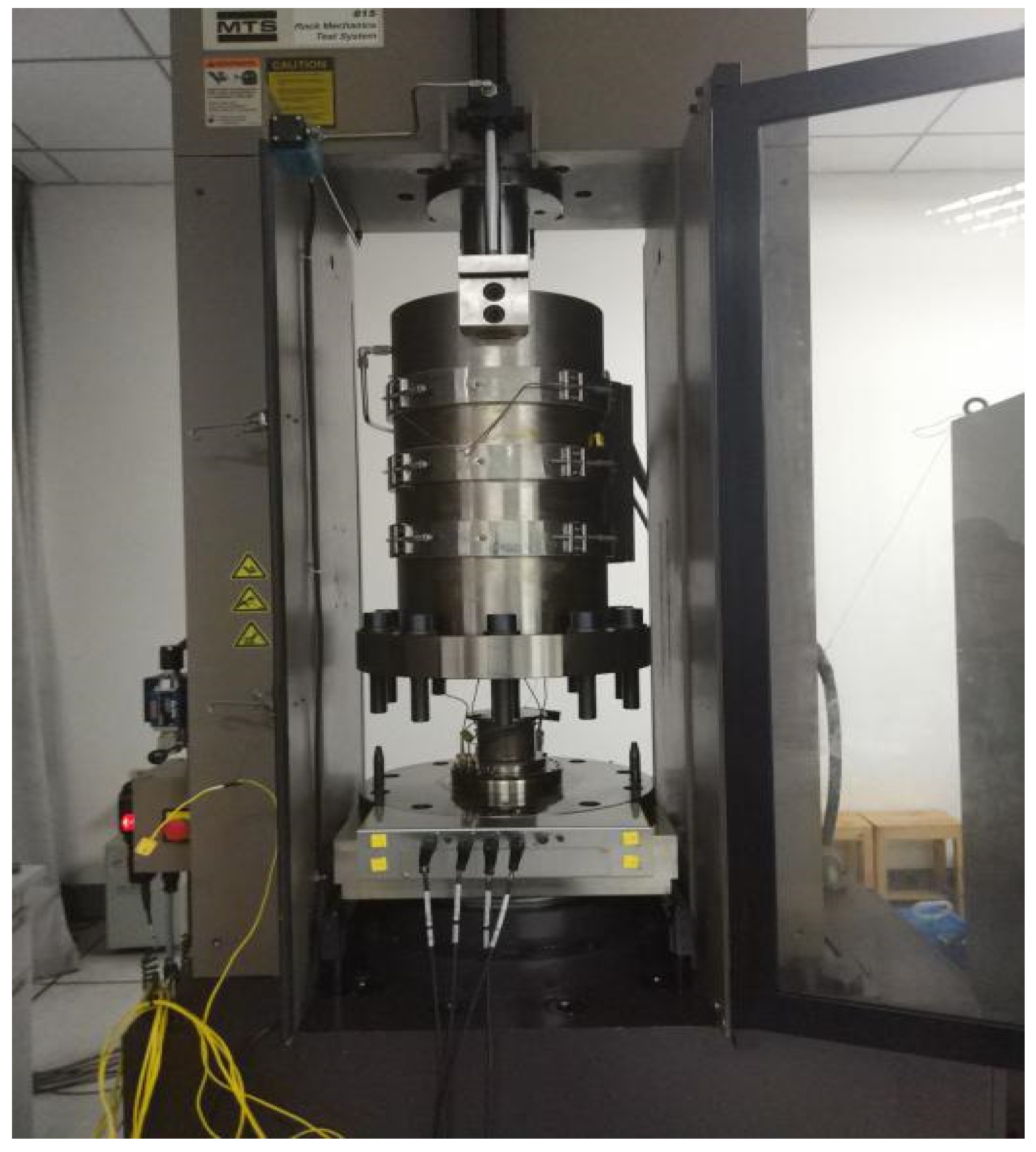 −1) to ensure quasi-static loading, and confining pressure was maintained constant during each test. The experimental setup is illustrated in