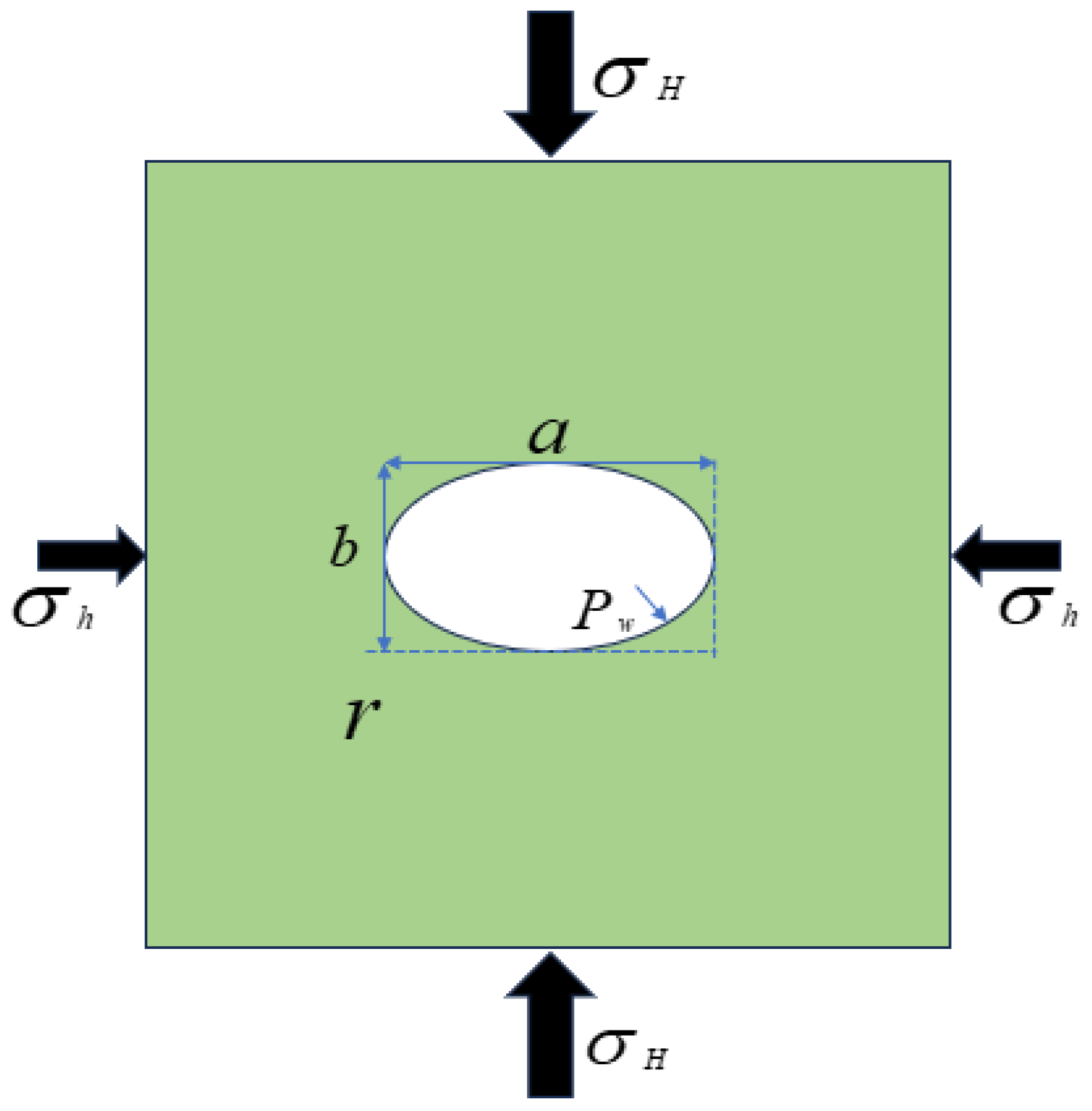19]. To simplify calculations, the boundary of the plastic zone is approximated as an ellipse, with its major axis aligned with the direction of the minimum horizontal stress.