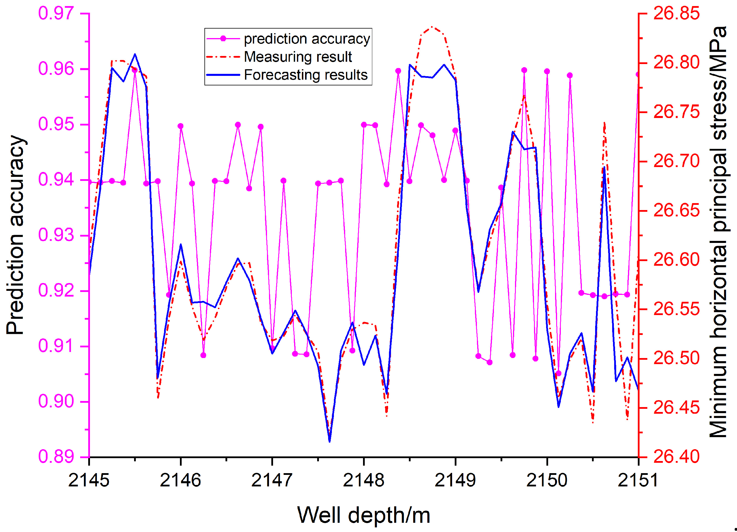 Via stress analysis of the elliptical wellbore model, a new predictive model for horizontal in situ stresses was proposed. This model predicts the maximum and minimum horizontal principal stresses and shows good agreement with field data, demonstrating its effectiveness in characterizing the horizontal in situ stress state in marine shale. This study provides technical guidance for drilling engineering in deep shale gas wells and other complex formations, aiding in mitigating wellbore instability risks, optimizing drilling parameters, and enhancing operational safety.