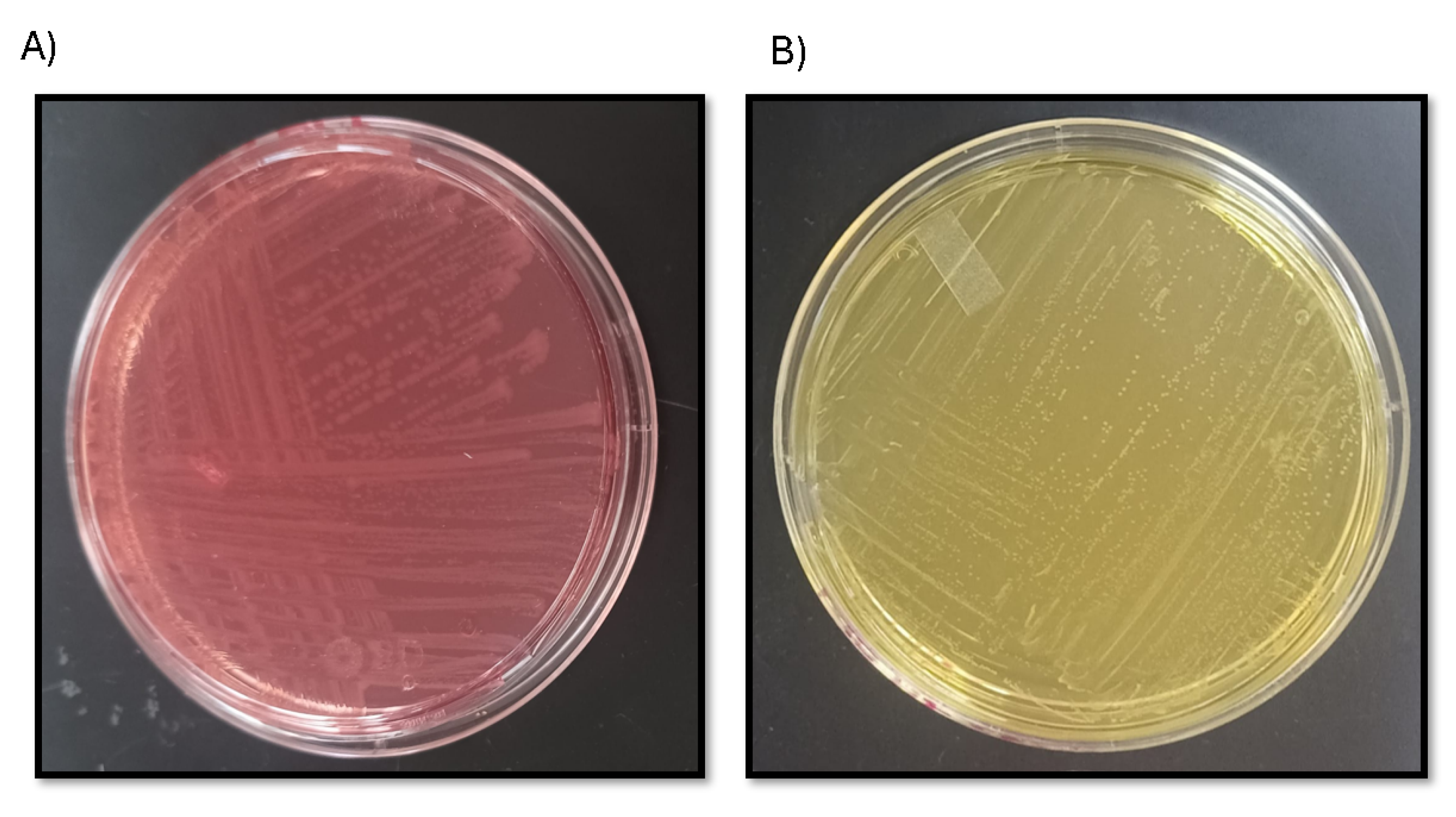 The saccharolytic activity of Escherichia coli expressing AIDA-SacA was evaluated using a phenol red sucrose fermentation assay. E. coli W3110 strains harbouring pAIDA-sacA and a control strain without the plasmid were streaked onto phenol red agar plates containing 10 g L−1 peptone (Sigma-Aldrich, Burlington, MA, USA), 5 g L−1 sodium chloride (Karal, León, Mexico), 0.018 g L−1 phenol red (Sigma-Aldrich, Burlington, MA, USA), 5 g L−1 sucrose (Materiales y Abastos Especializados, Zapopan, Mexico; ACS grade) as the sole carbon source and ampicillin (Pharmalife, Laboratorios Pisa, Guadalajara, Mexico, ≥99% purity) at a final concentration of 100 µg mL−1. Plates were incubated at 37 °C for 48 h, and colour changes in the medium were recorded as an indicator of acid production from red to yellow resulting from sucrose metabolism.