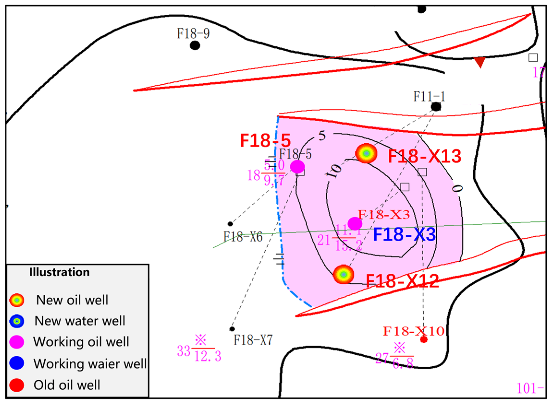 The area where the well group FJF18-X208 is located was selected as the study area. The average porosity was 19.5% and the average permeability was 20.3 mD, which belonged to a low-permeability reservoir. The area of the study zone is 1.37 km