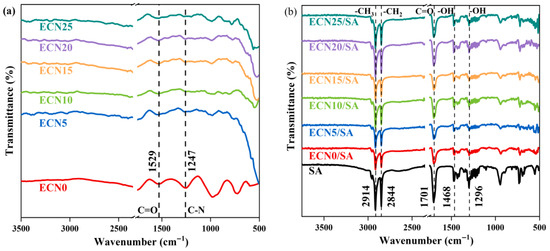 FTIR spectra of ECNX (a) and ECNX/SA (b).