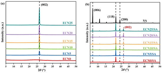 XRD patterns of ECNX (a) and ECNX/SA (b).