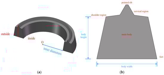 When analyzing the sealing gasket, we found a significant difference between two-dimensional (2D) and three-dimensional (3D) models during the compression process. As shown in Figure 4, the cross-section of the 2D model deforms uniformly around its axis of symmetry. However, in the 3D model, due to the combined effects of the material’s geometric characteristics and contact friction, the cross-sectional deformation tends to expand non-uniformly outwards.