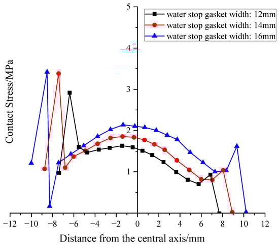 Distribution of contact stress on the upper part of the gasket under different widths.