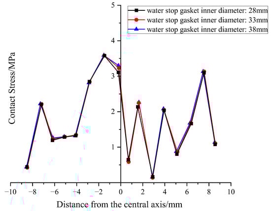 Distribution of contact stress on the upper part of gaskets with different inner diameters.