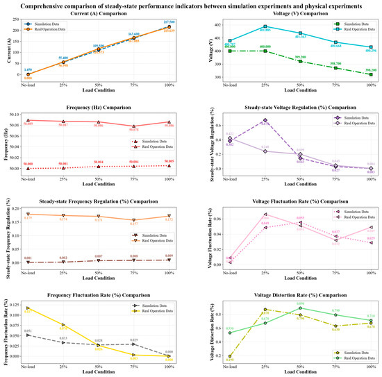 Comparison of steady-state performance indicators between simulation experiments and physical experiments.