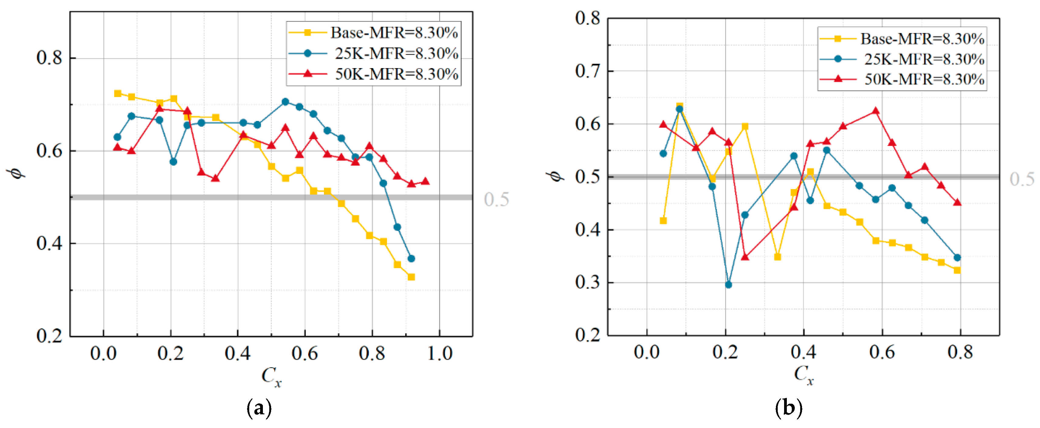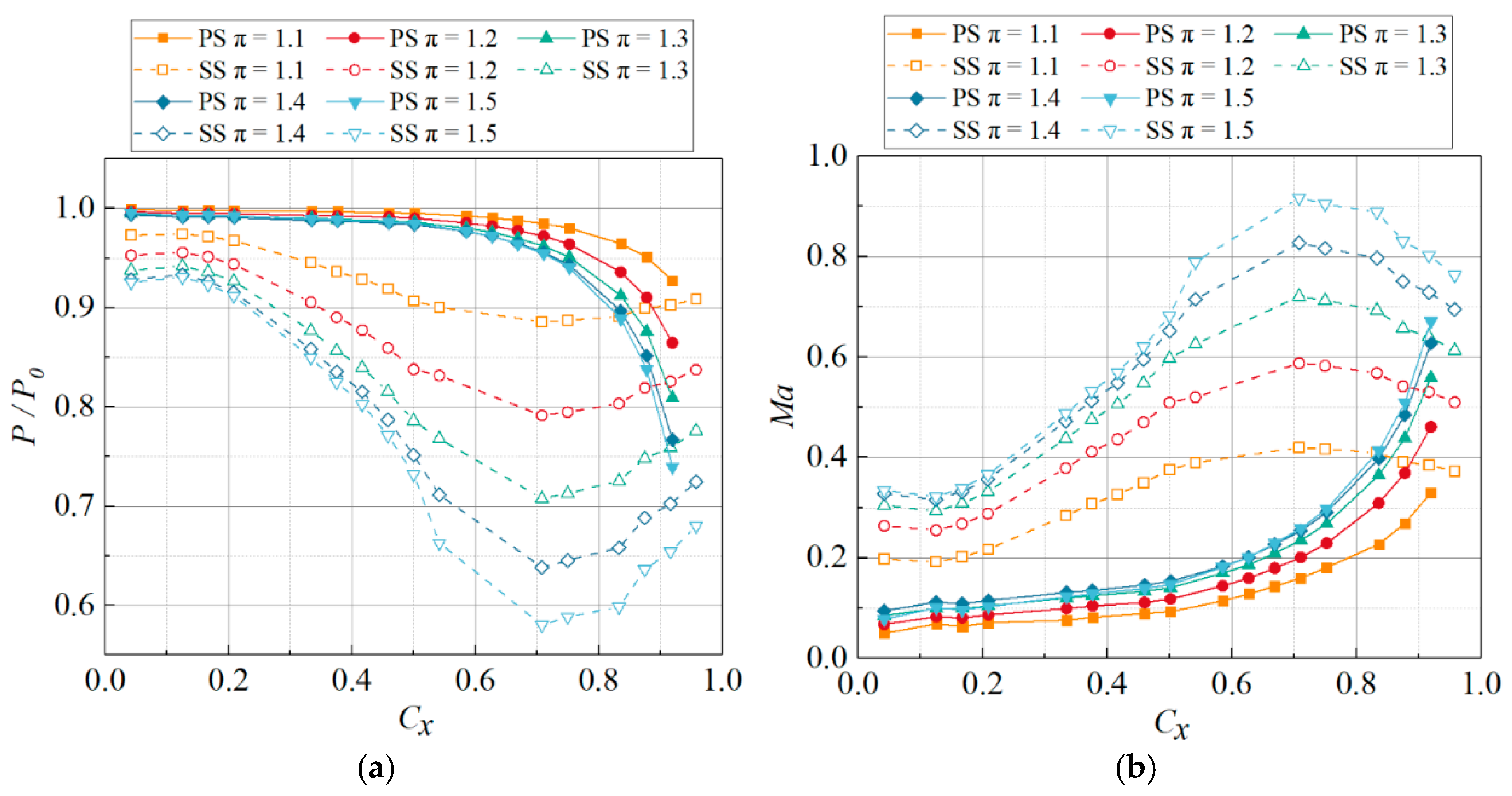 4.1. Analysis of Aerodynamic Performance of Turbine Vanes