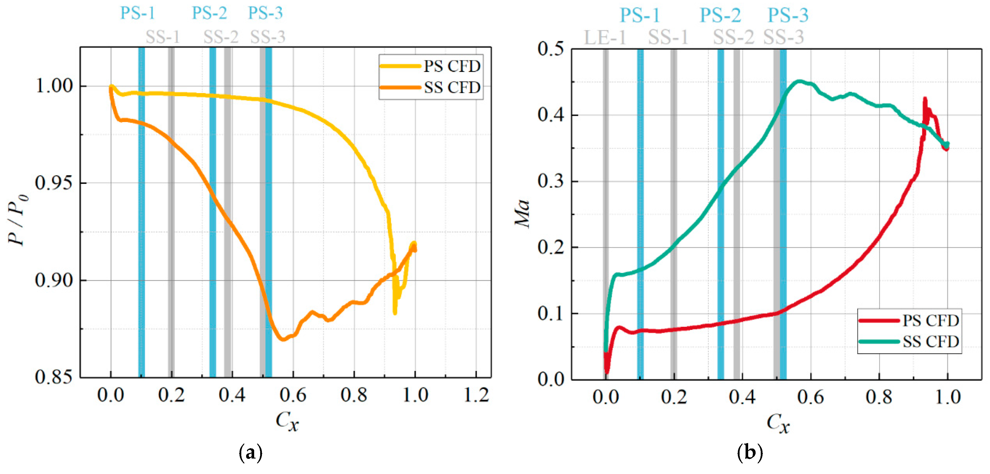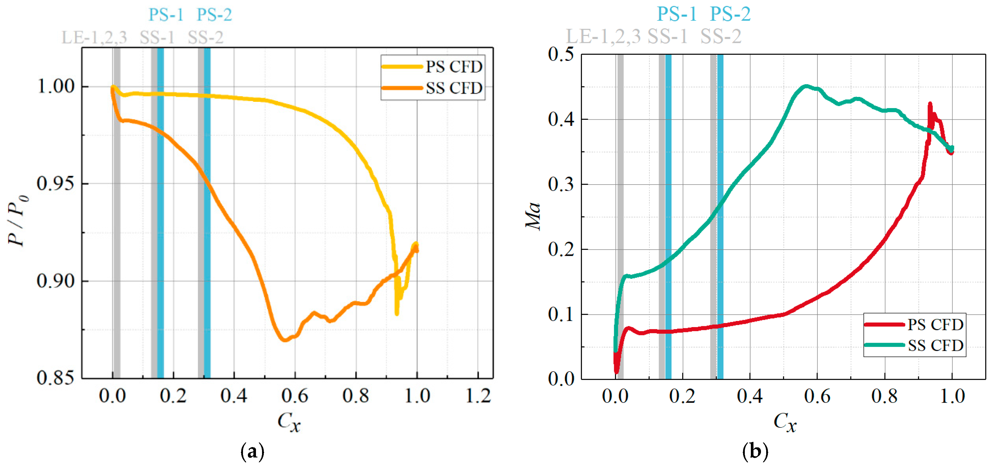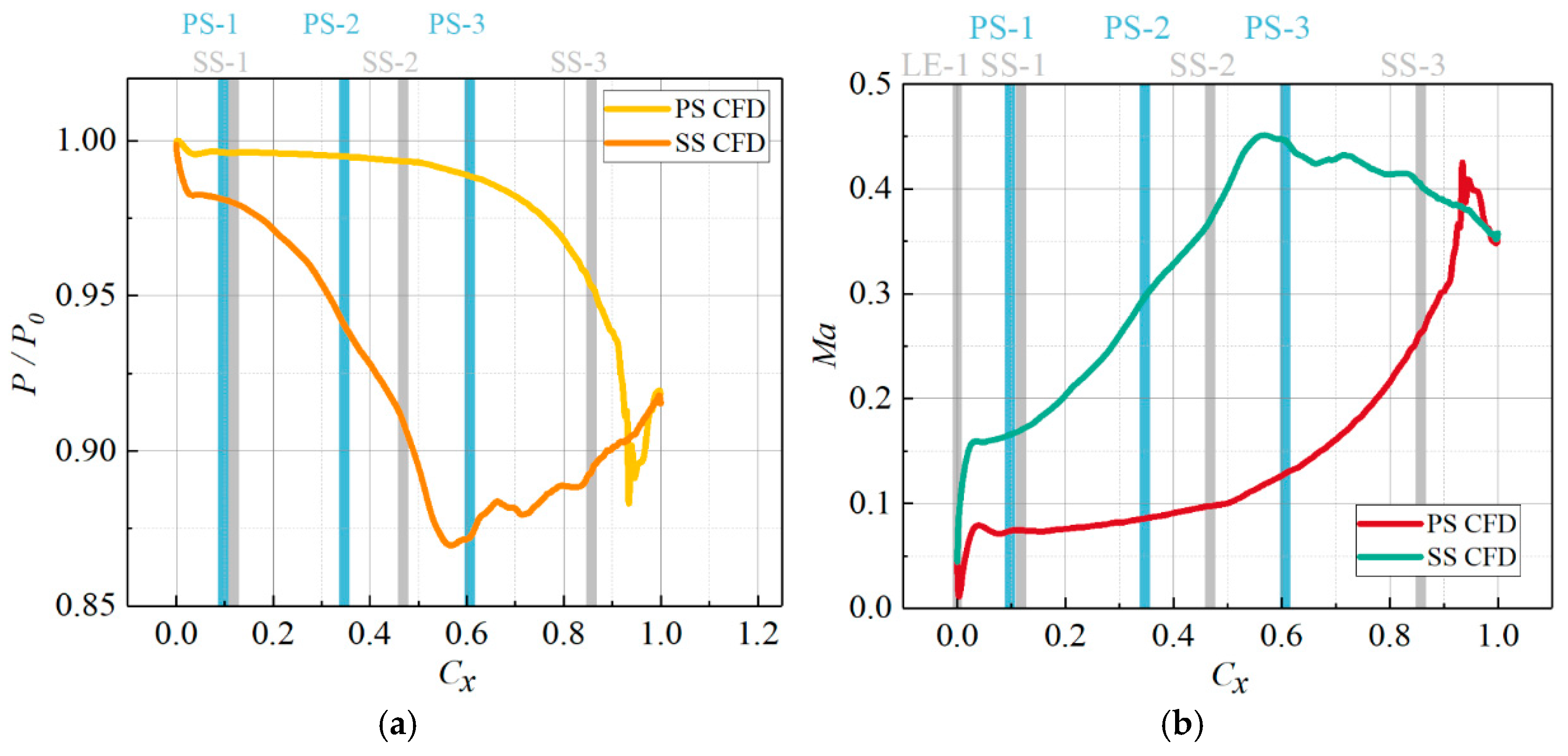 2.3. Experimental Blade Model and Pressure–Temperature Measurement System