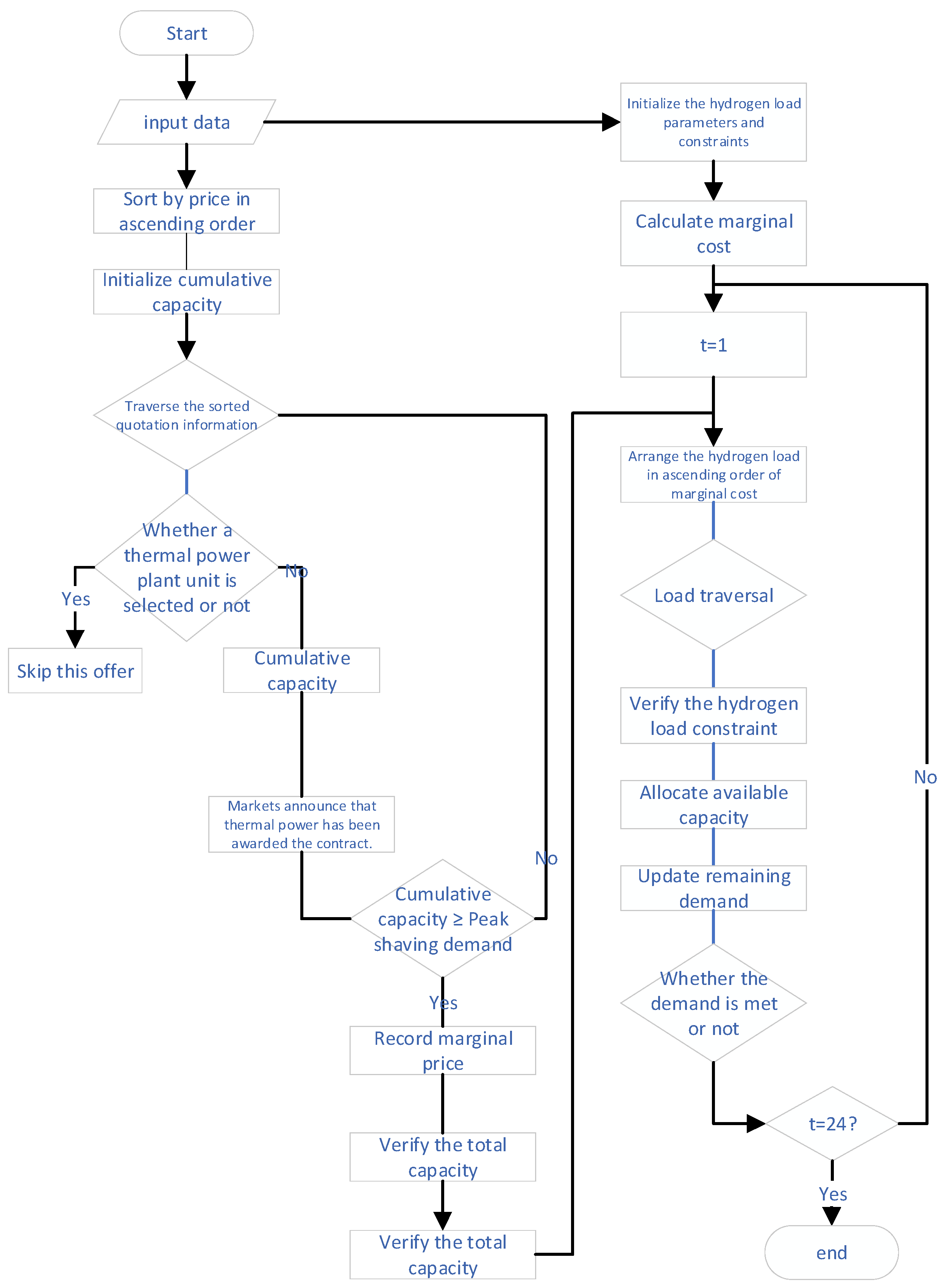 Despite considering the handling of uncertainty factors, researchers mostly studied the clearing and quotation mechanisms of existing peak shaving resources participating in the peak shaving market or the addition of hydrogen storage to the original peak shaving market-related mechanisms, but did not study the quotation strategies and clearing models of electrolytic hydrogen production participating in the peak shaving market that takes into account multiple types of peak shaving resources.