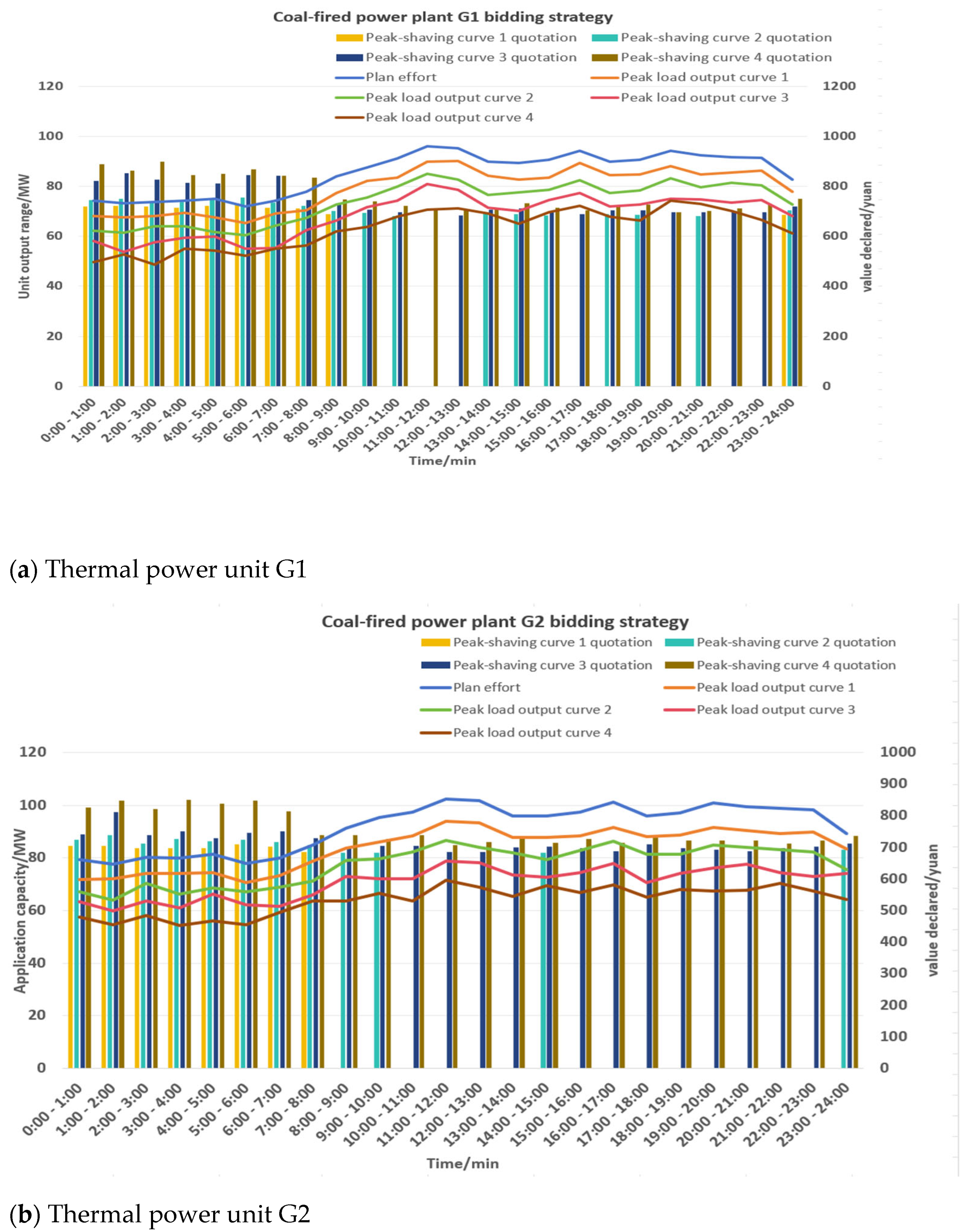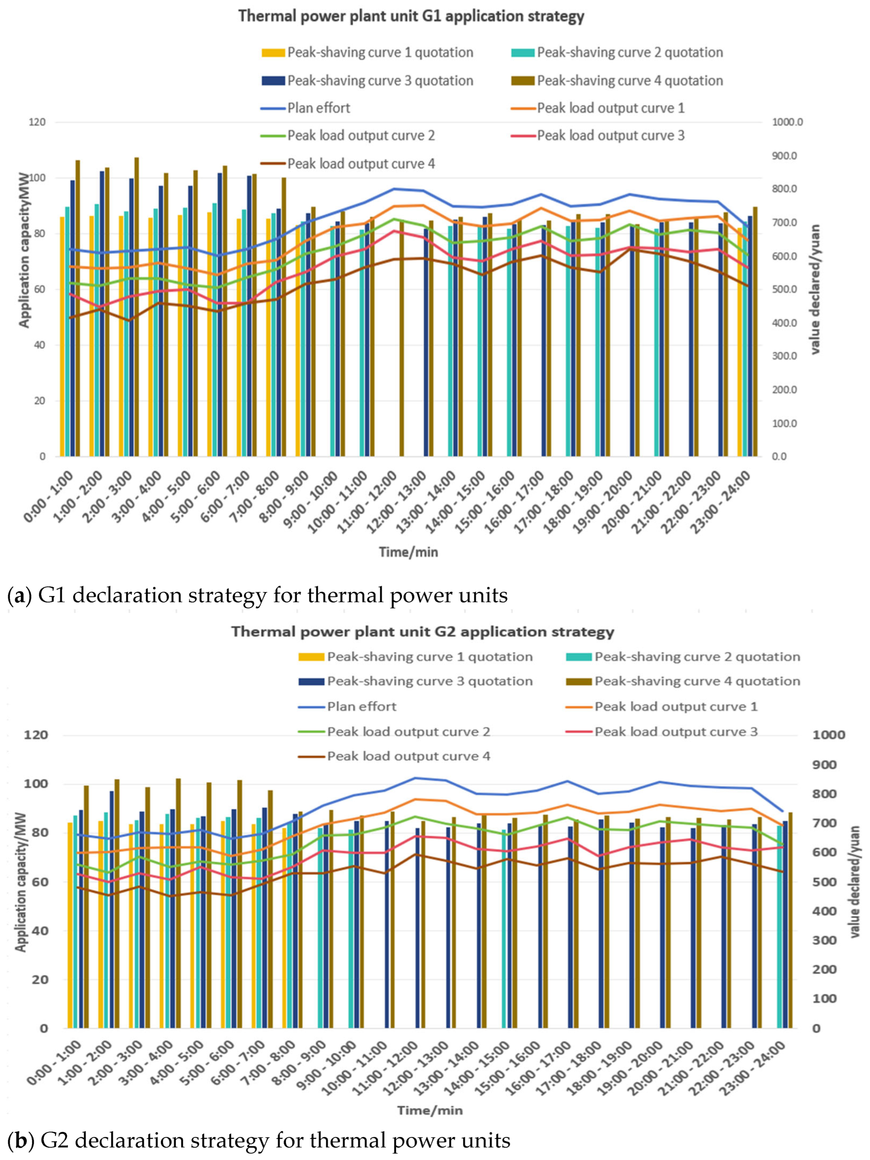 Figure 8. The declaration strategies of thermal power units, pumped storage power stations, and electrochemical energy storage.