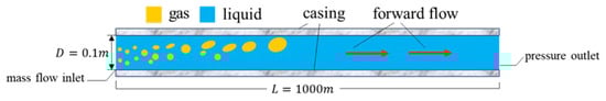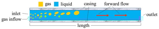 The drift-flux model is commonly used in hydraulic models based on transient two-phase flow in wellbore. The drift-flux model has been widely used to describe the phenomenon of gas–liquid two-phase flow in wellbore. The most basic drift-flux model was originally proposed by Zuber and Findlay [], and later modified by Wallis [], Ishii [] and Shi et al. []. In order to derive the control equations, the following assumptions are usually made: the gas phase and liquid phase have the same pressure and temperature in the same section; the influence of temperature changes in the wellbore on the gas–liquid parameters is ignored; and the mass transfer between the gas and liquid phases is ignored.