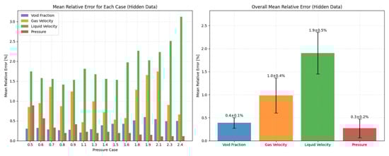 As shown in Figure 10, the maximum relative average error of a single condition is 1.9%, and the average relative error of the overall condition is 0.9%, indicating that the model can still perform well when some points are accurate. The performance of the model when 20% to 80% of the data points are hidden is subsequently explored, as shown in Table 5.