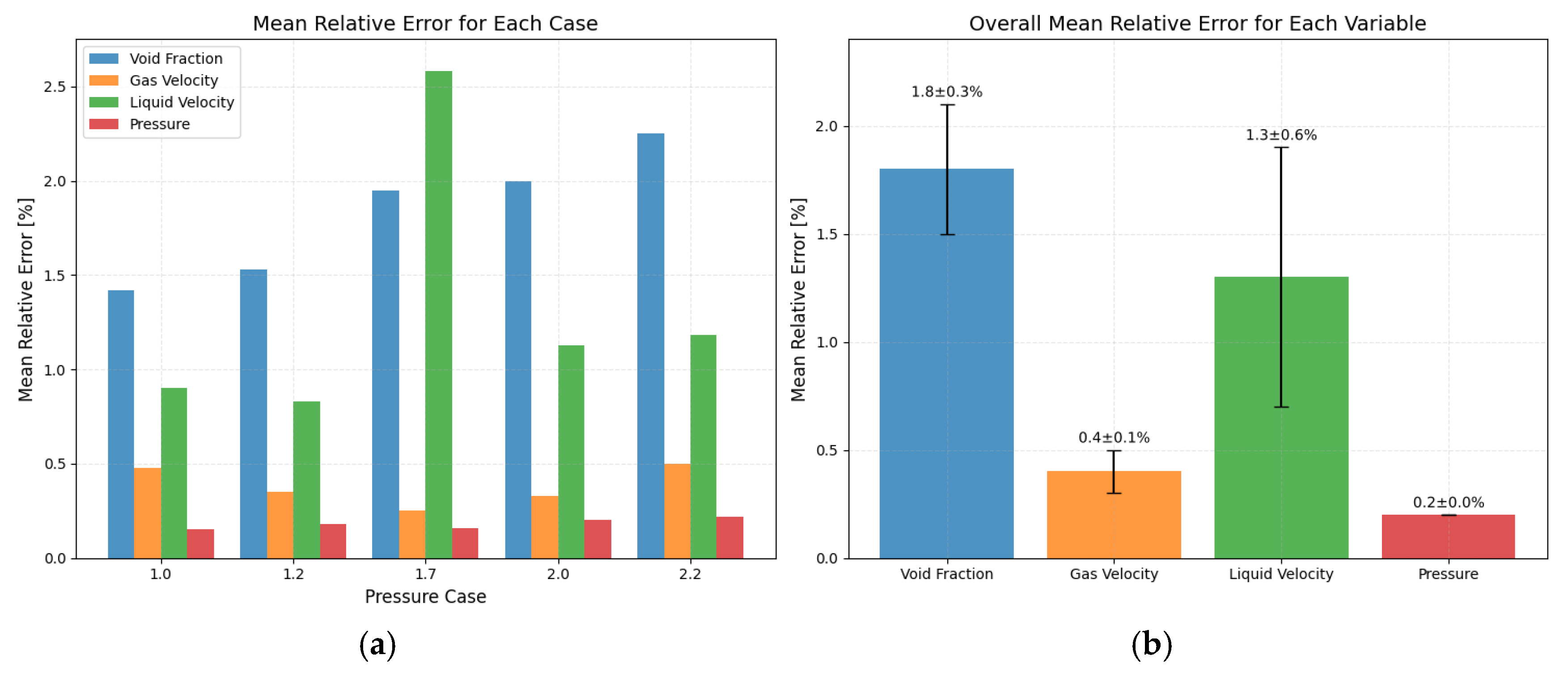 Statistics of average relative error (a) Average relative error of each case (b) Average relative error of all cases.