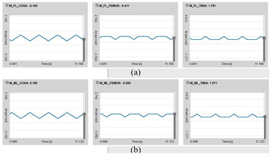 Waveform diagram of rotation angles of each joint in wave gait. (a) Waveform diagram of left anterior joint position sensor; (b) Waveform diagram of left middle joint position sensor.