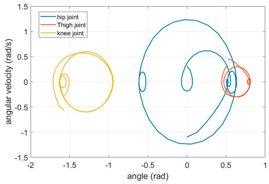 By analyzing the motion characteristics through the relationship between angle and speed, the periodic behavior of the hip joint is indicated by the closed circular trajectory. An approximate linear relationship is exhibited by both the hip joint and knee joint, indicating a positive correlation between speed and angle, as shown in Figure 26.