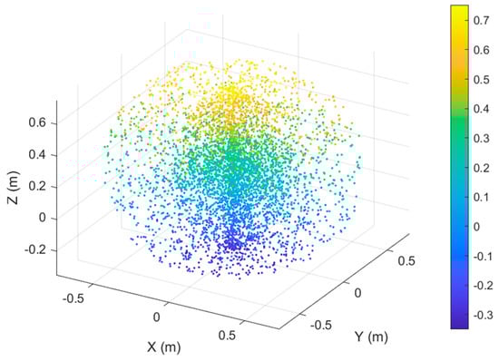 As shown in Figure 29, the Monte Carlo sampling points are distributed in a fan shape, with a wide range along the Z-axis, representing a hip joint angle of 90°. The horizontal coverage is determined by the length of each segment of the robotic arm, providing a reference for reachability in motion planning.
