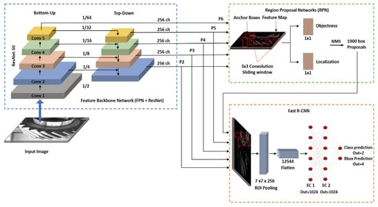Structure of the Faster R-CNN deep learning network for defect detection [82].