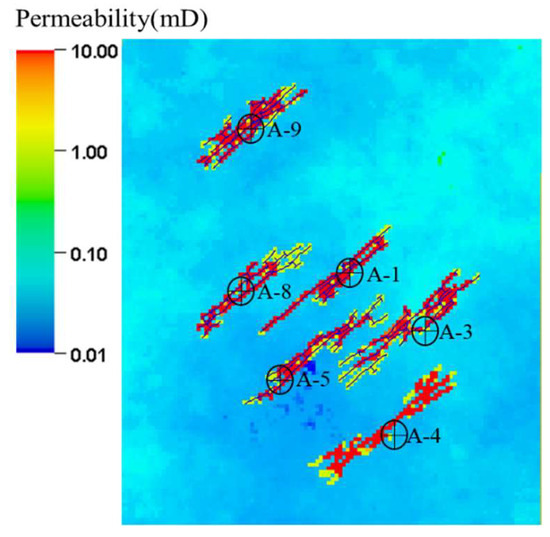 In this section, after correcting the model parameters through history fitting, the well A-7 model is selected for parameter sensitivity analysis. The properties of the extracted model remain heterogeneous.