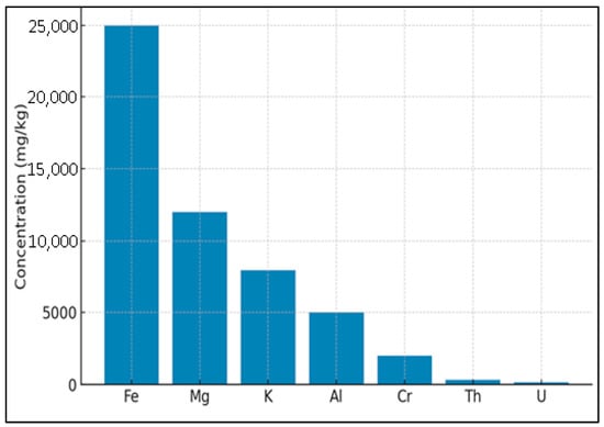 Figure 1). The soil showed exceptionally high concentrations of essential macronutrients, with iron (25,478 ± 1289 mg·kg