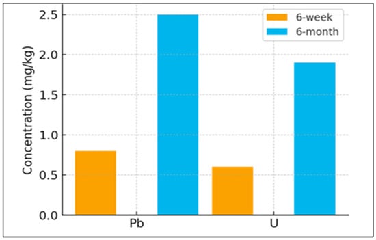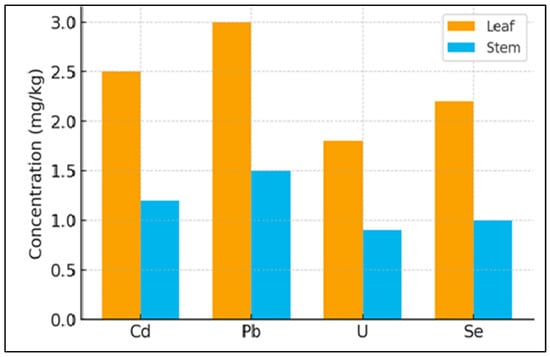 52]. Stem elongation was also more pronounced. However, these plants still displayed symptoms of stress, including occasional necrotic spots on older leaves and somewhat uneven growth. This suggests that while chelation improved the availability of some essential nutrients, it concurrently increased the bioavailability of toxic metals like Cd and U, imposing a new physiological burden that manifested as residual toxicity symptoms [