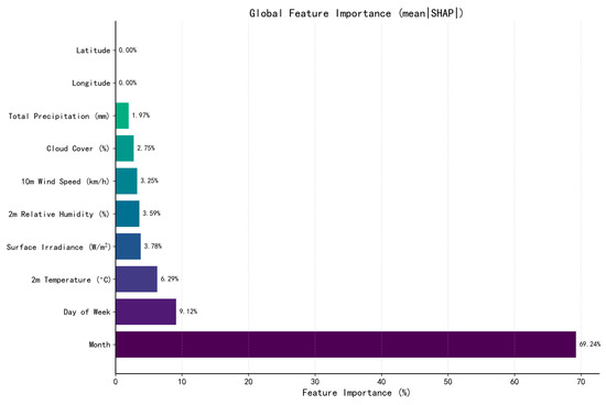 - Among meteorological variables, air temperature (6.29%), solar irradiance (3.78%), and humidity (3.59%) were identified as the three most influential factors.