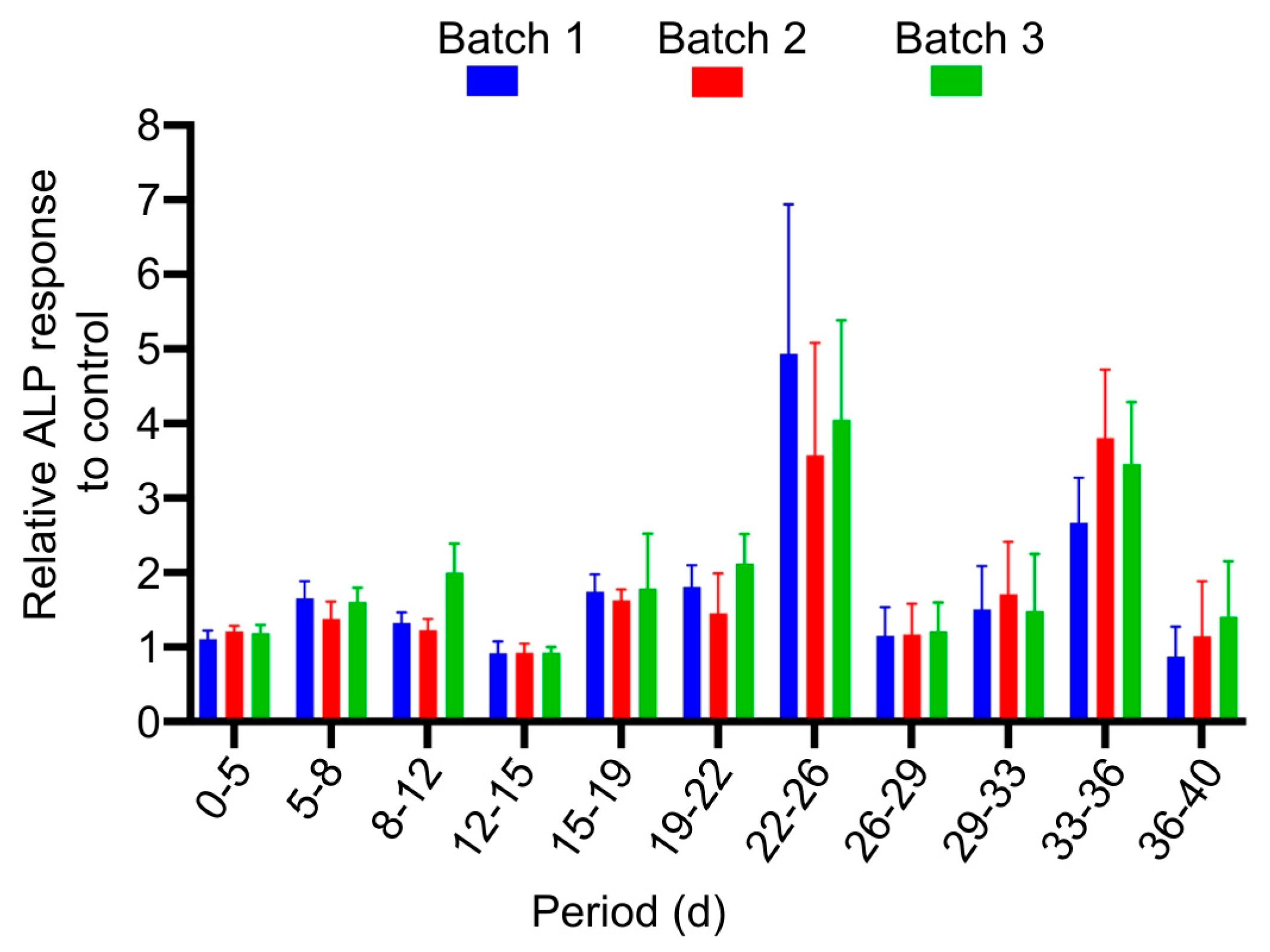 3.4. ALP Activity Induced by Released rhBMP-2 in Cell-Based Assay