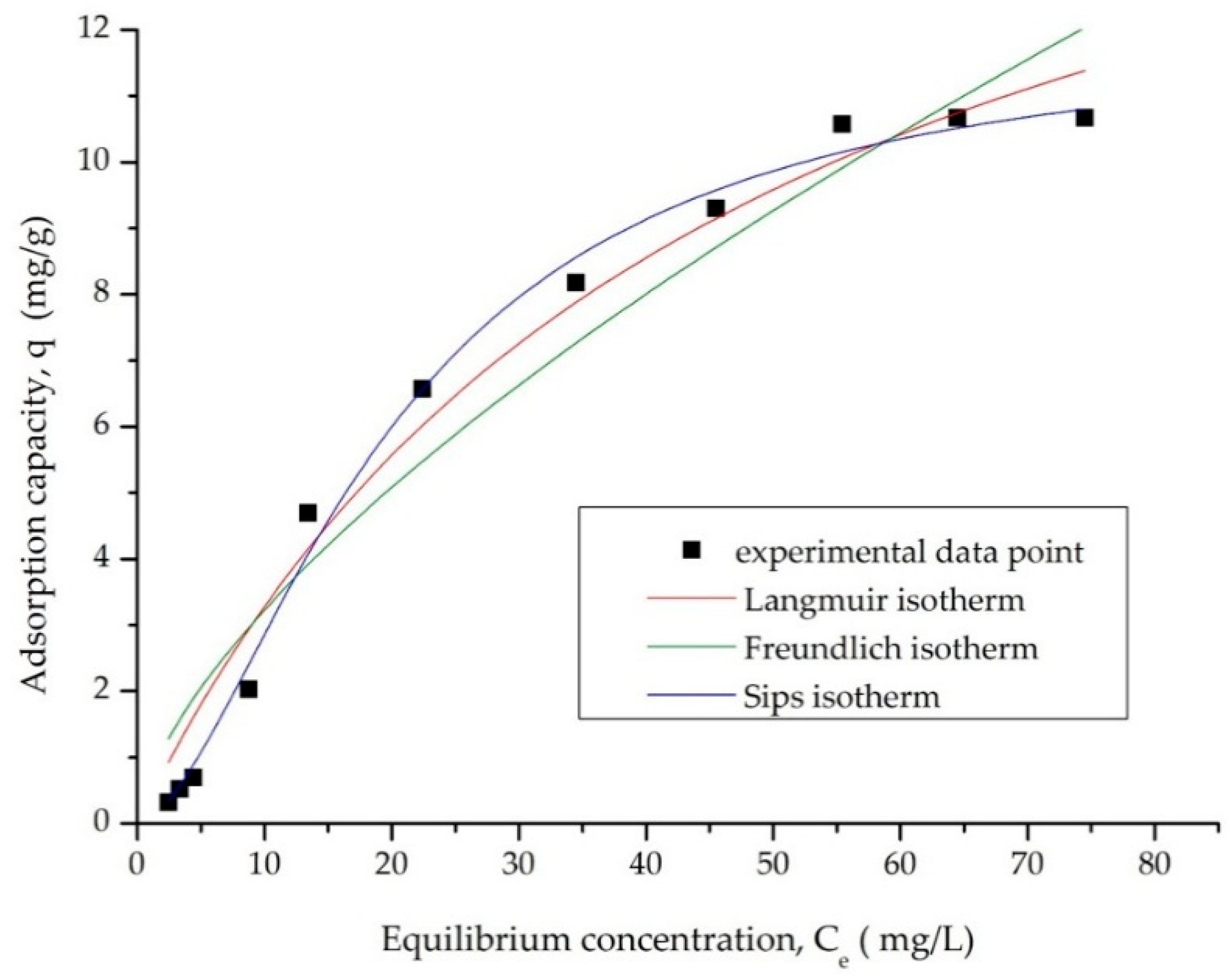 3.2.6. Equilibrium Studies—Adsorption Isotherms