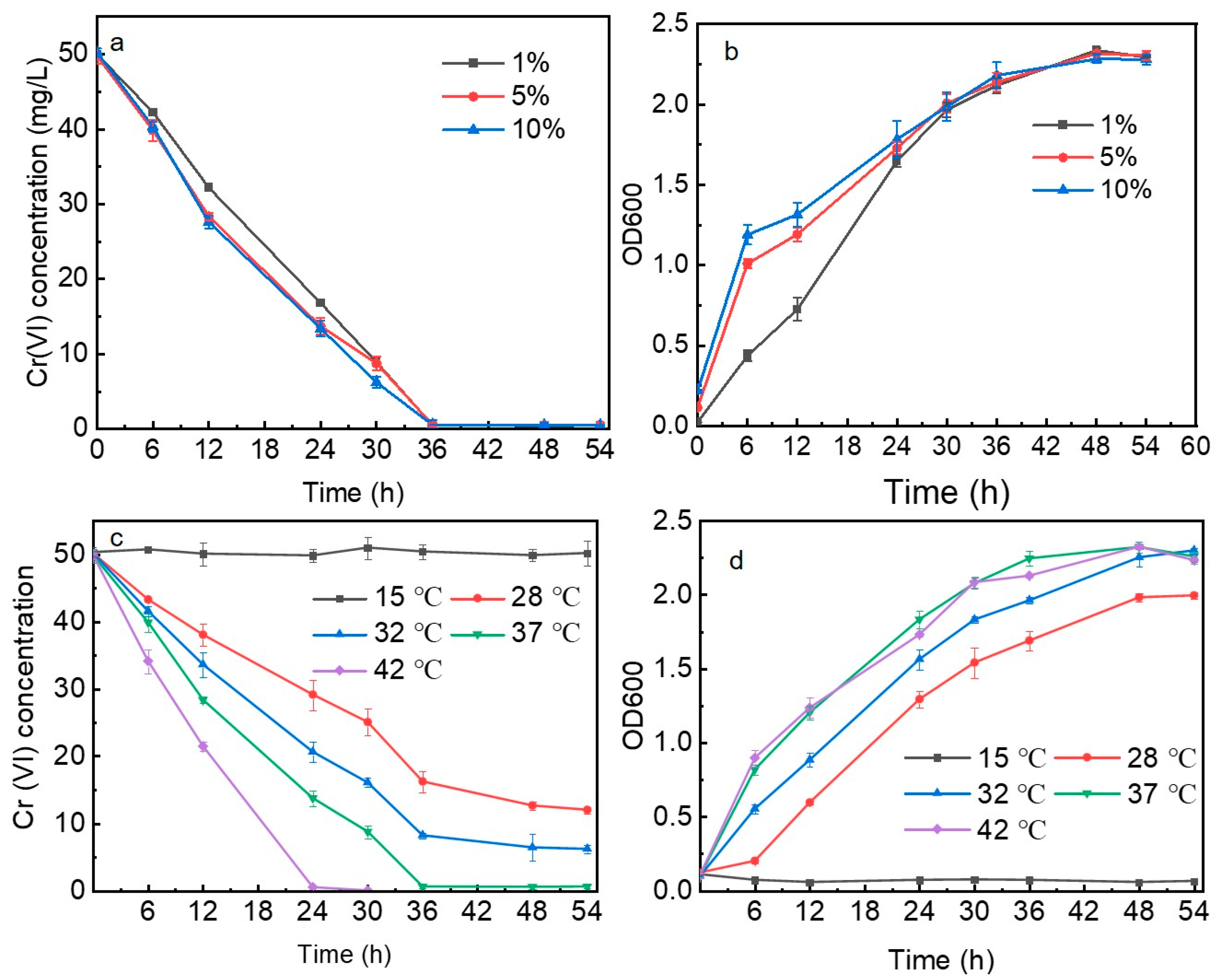 2.3. Influencing Factors of Bioreduction of Cr(VI)