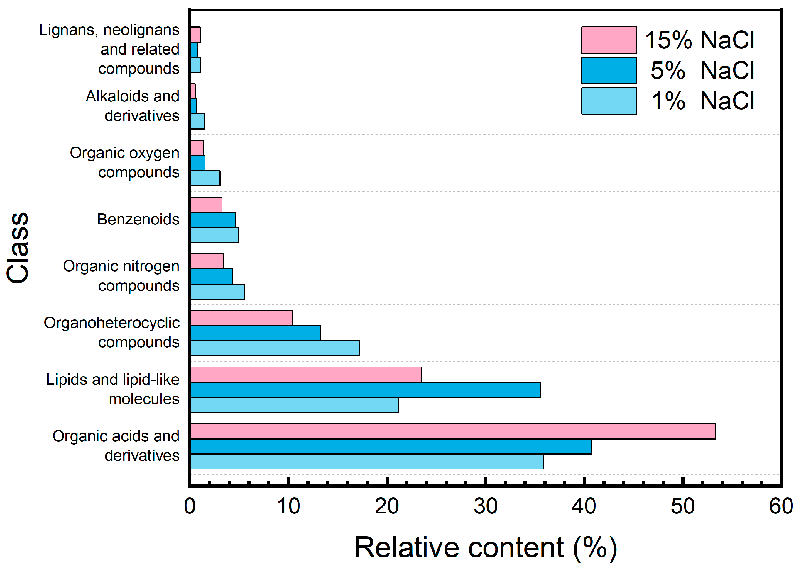 - Wang, D.; He, Z.; Liu, M.; Jin, Y.; Zhao, J.; Zhou, R.; Wu, C.; Qin, J. Exogenous fatty acid renders the improved salt tolerance in Zygosaccharomyces rouxii by altering lipid metabolism. LWT 2023, 177, 114579. [Google Scholar] [CrossRef]