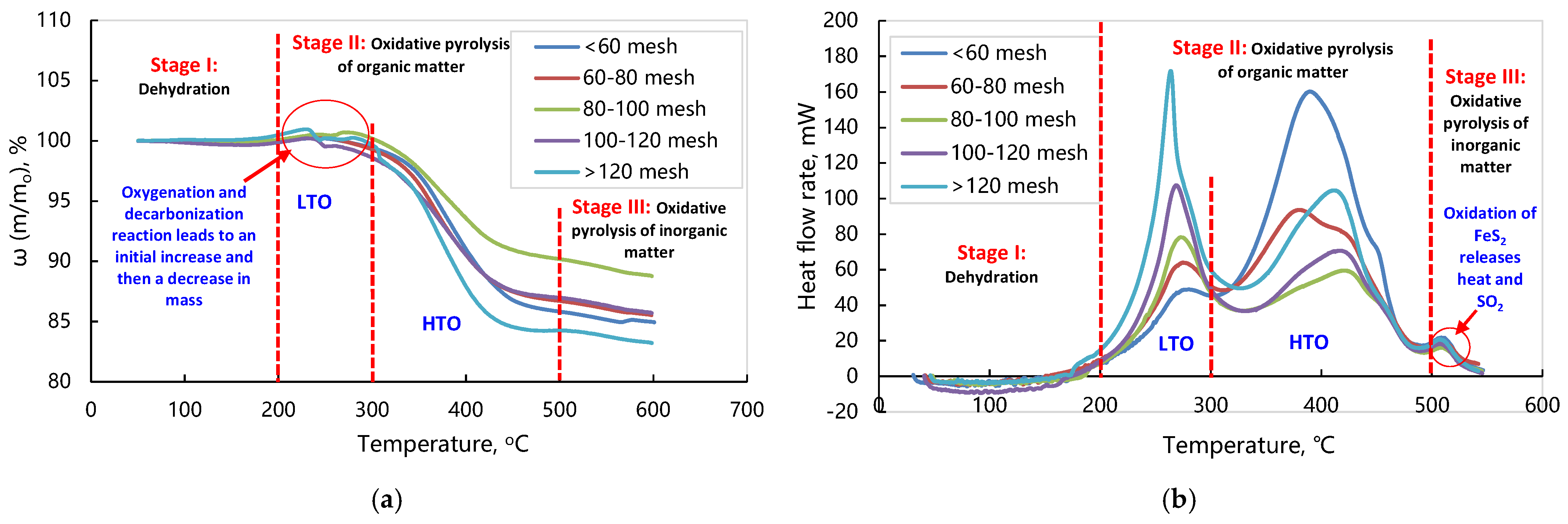 3.3.1. Weight Loss and Heat Release Characteristics of Oil Shale