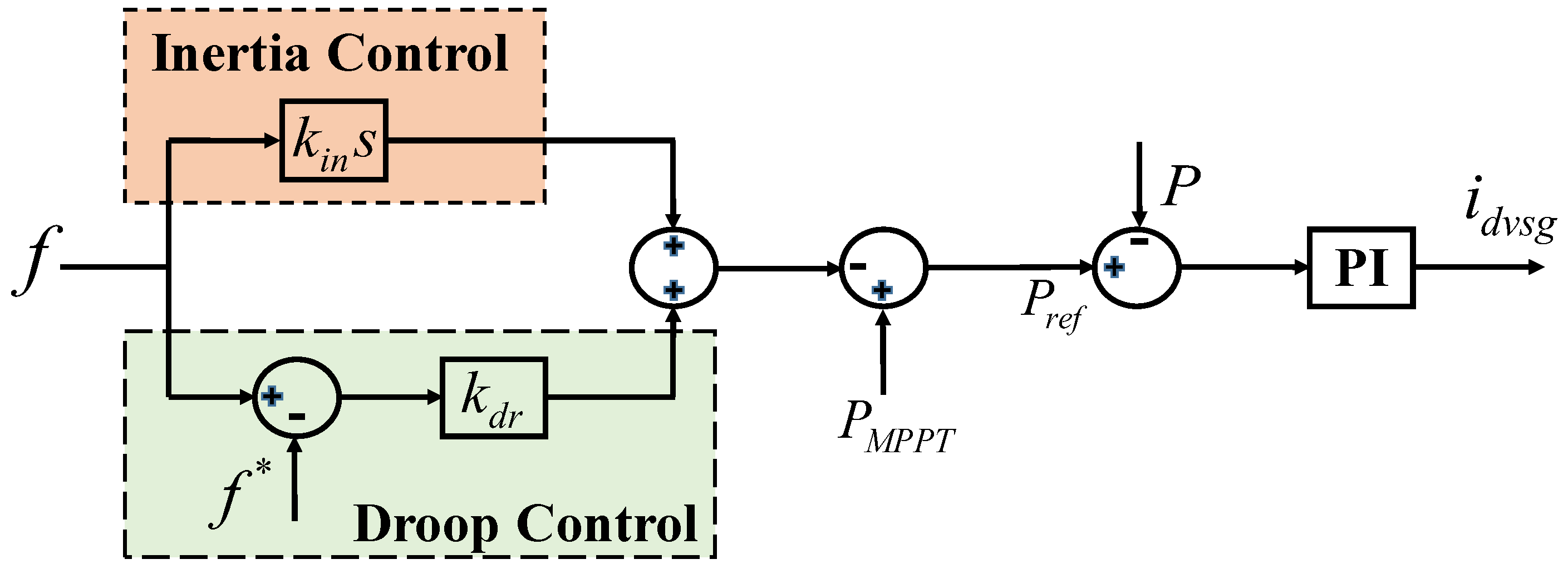 - Pian, H.; Meng, K.; Li, H.; Liu, Y.; Li, Z.; Jiang, L. An adaptive control strategy for virtual synchronous generator based on exponential inertia and nonlinear damping. Energies 2025, 18, 3822. [Google Scholar] [CrossRef]