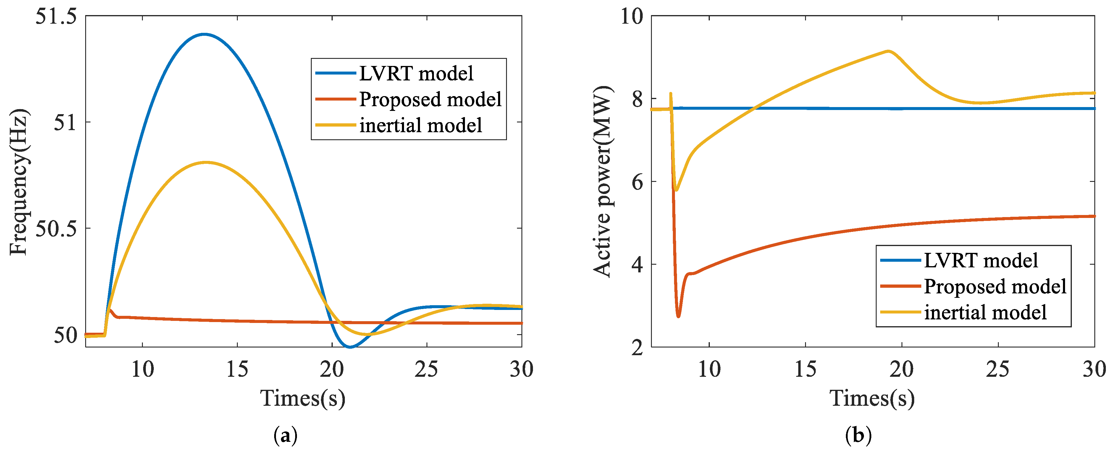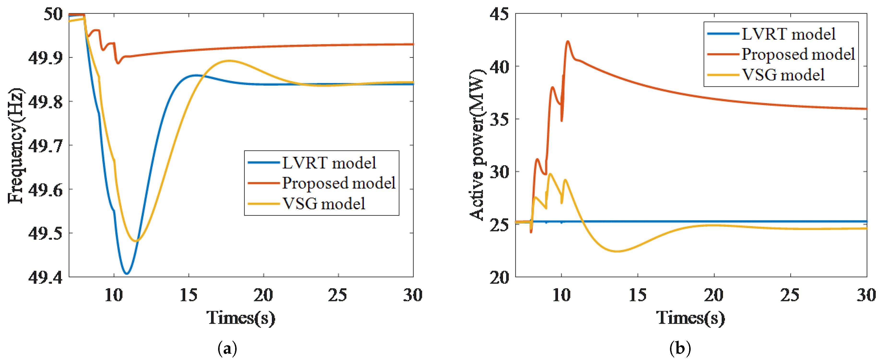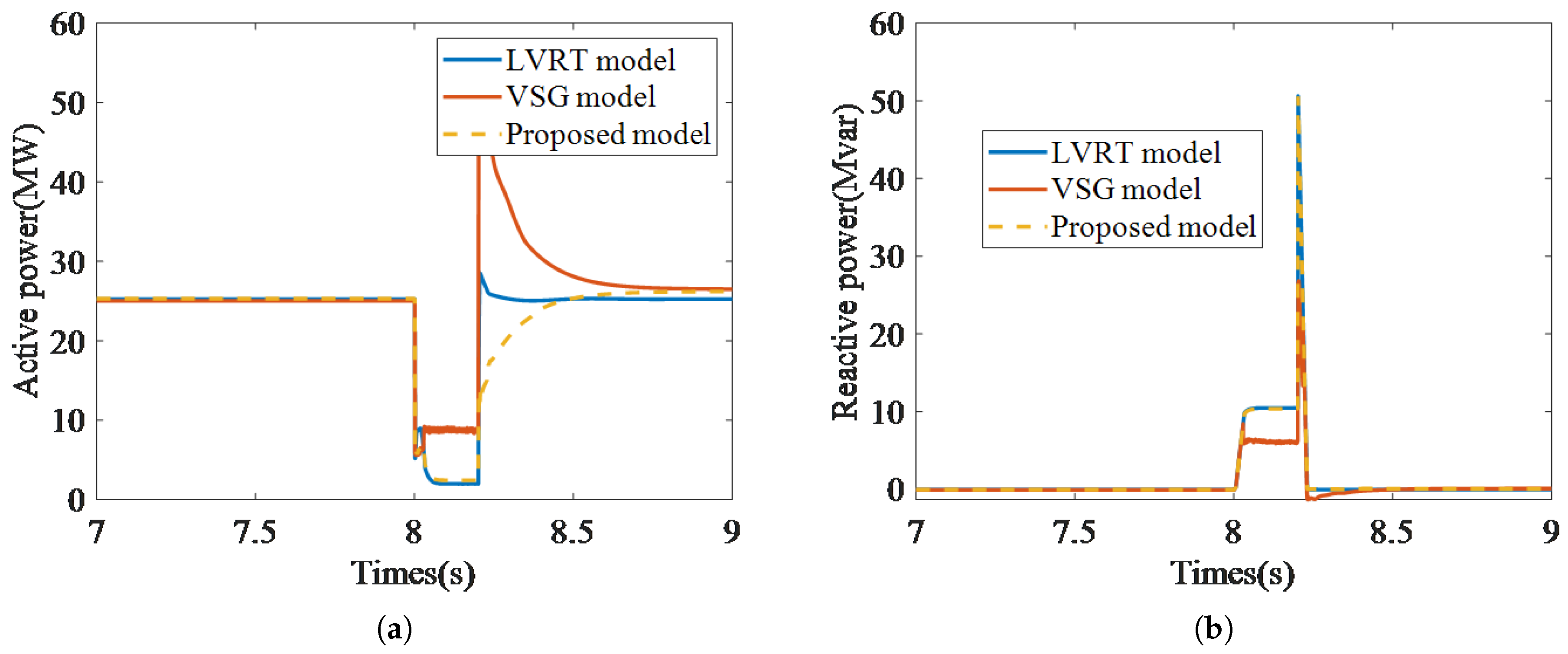 - Tang, Y.; Wang, B.; Chen, Y.; Jiang, X.; Du, Y. Research on Vsg Low-Voltage Ride-Through Control Strategy Under Symmetrical Power Grid Fault. In Proceedings of the 2025 44th Chinese Control Conference, Chongqing, China, 28–30 July 2025; pp. 1–7. [Google Scholar]