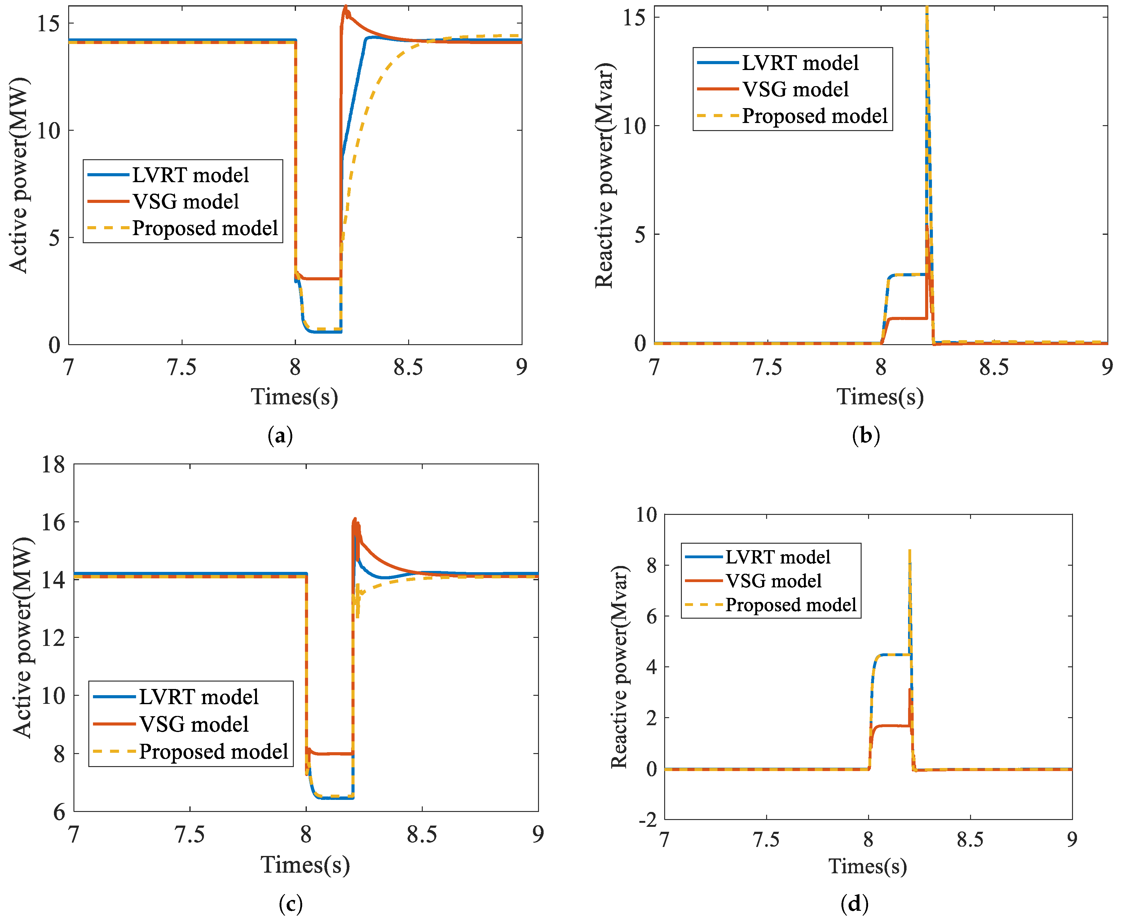 | Model | Reactive Power Support 0.2 p.u. (Mvar) | Compliance Levels | Reactive Power Support 0.5 p.u. (Mvar) | Compliance Levels |