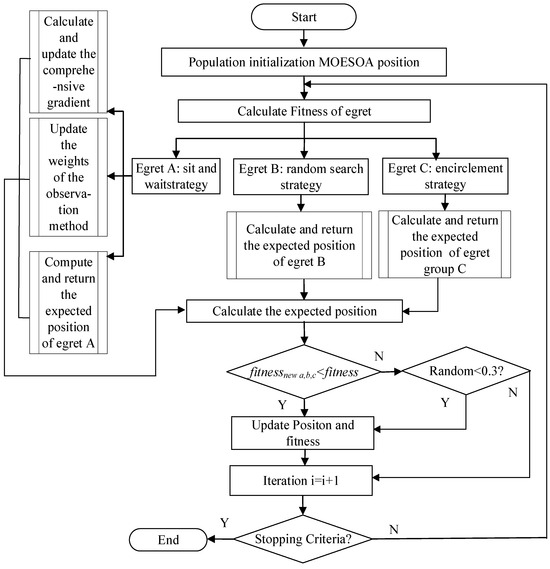 Flow chart of multi-objective egret swarm optimization algorithm.