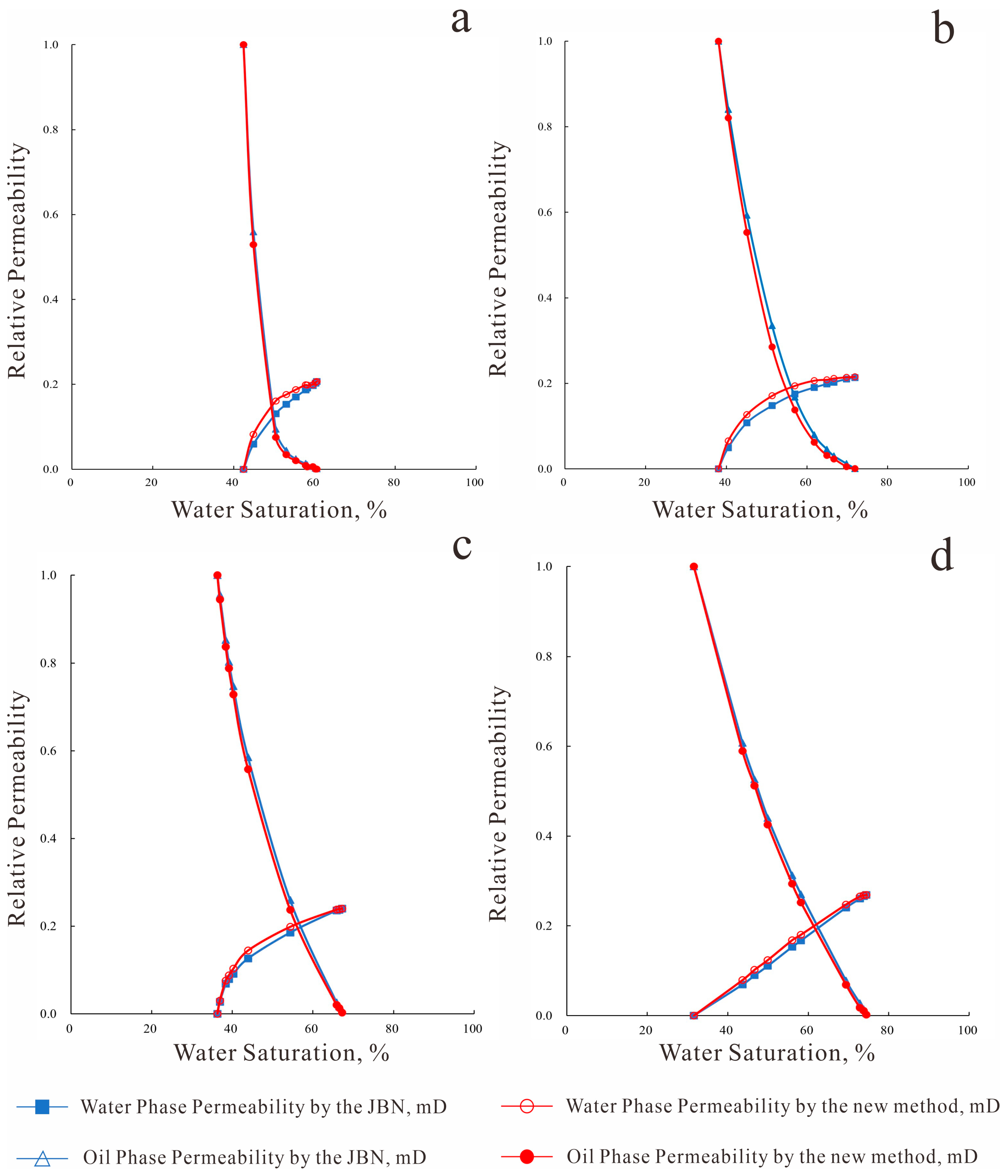 The oil–water relative permeability curves obtained using the new method were systematically compared with those derived from the conventional JBN approach.