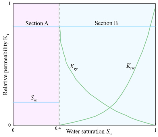 Typical relative permeability of gas–water two-phase flow during the displacement process.