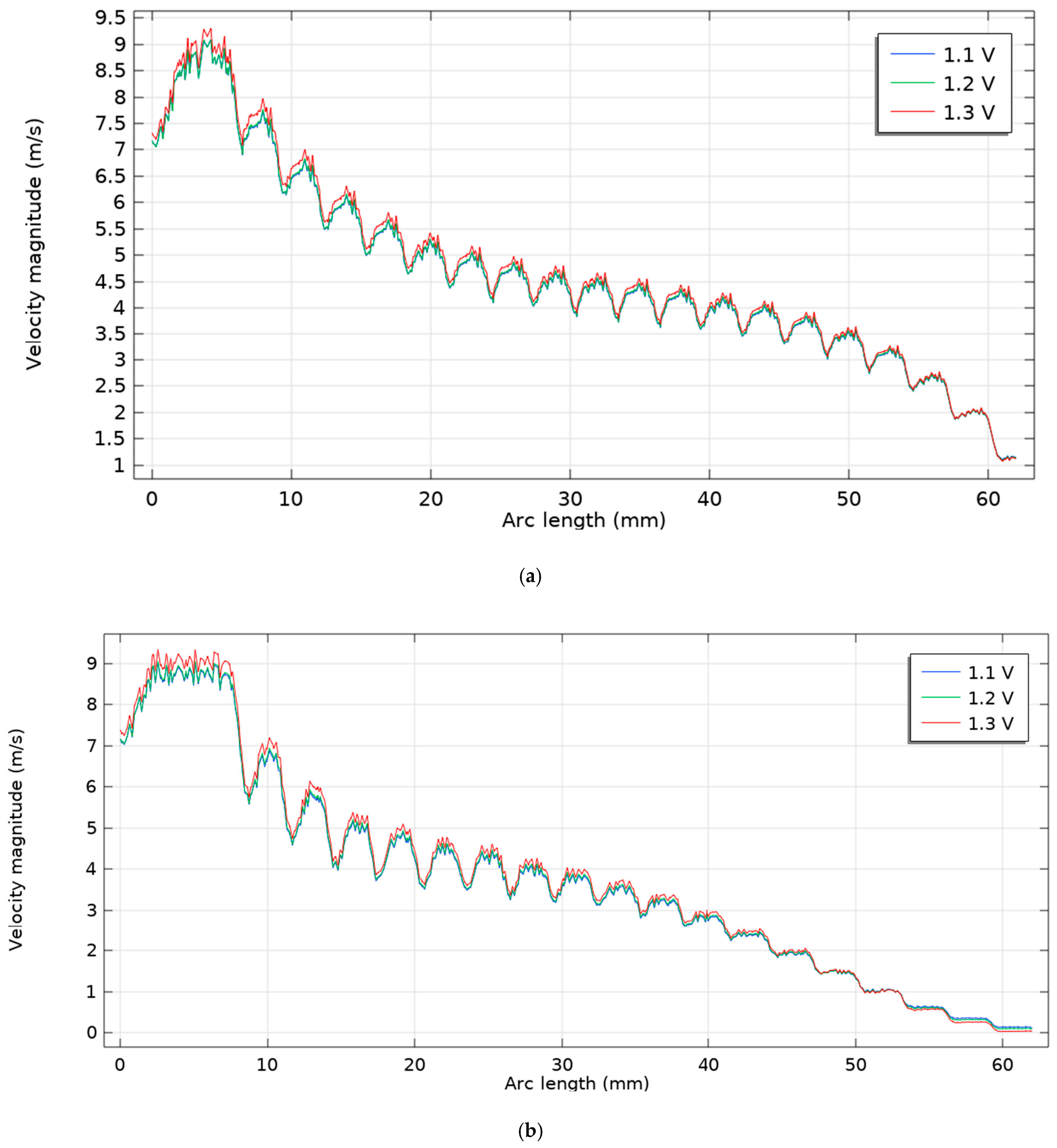 | Tu et al., 2024 [38] | Channel cross-section shape (square/rectangular/triangular/trapezoidal) | Fixed V ranges per study | Trapezoidal channels yield the highest H2 production rate among the tested shapes |