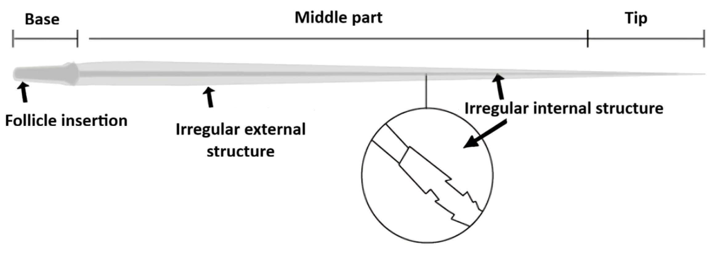 - Grant, R.A.; Goss, V.G. What can whiskers tell us about mammalian evolution, behaviour, and ecology? Mammal Rev. 2022, 52, 148–163. [Google Scholar] [CrossRef]
