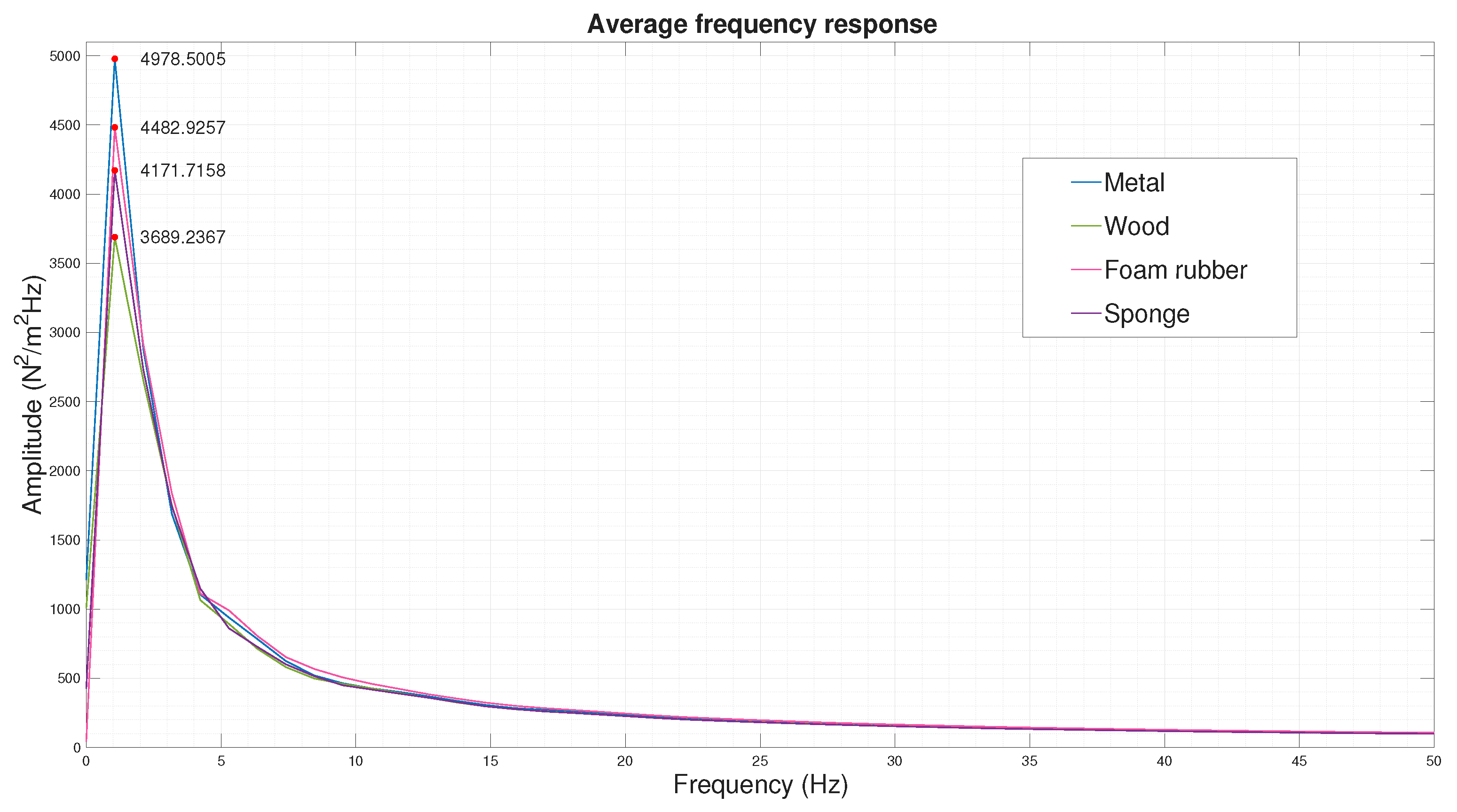| Material | Frequency with Maximum Amplitude | Frequency with Minimum Amplitude |