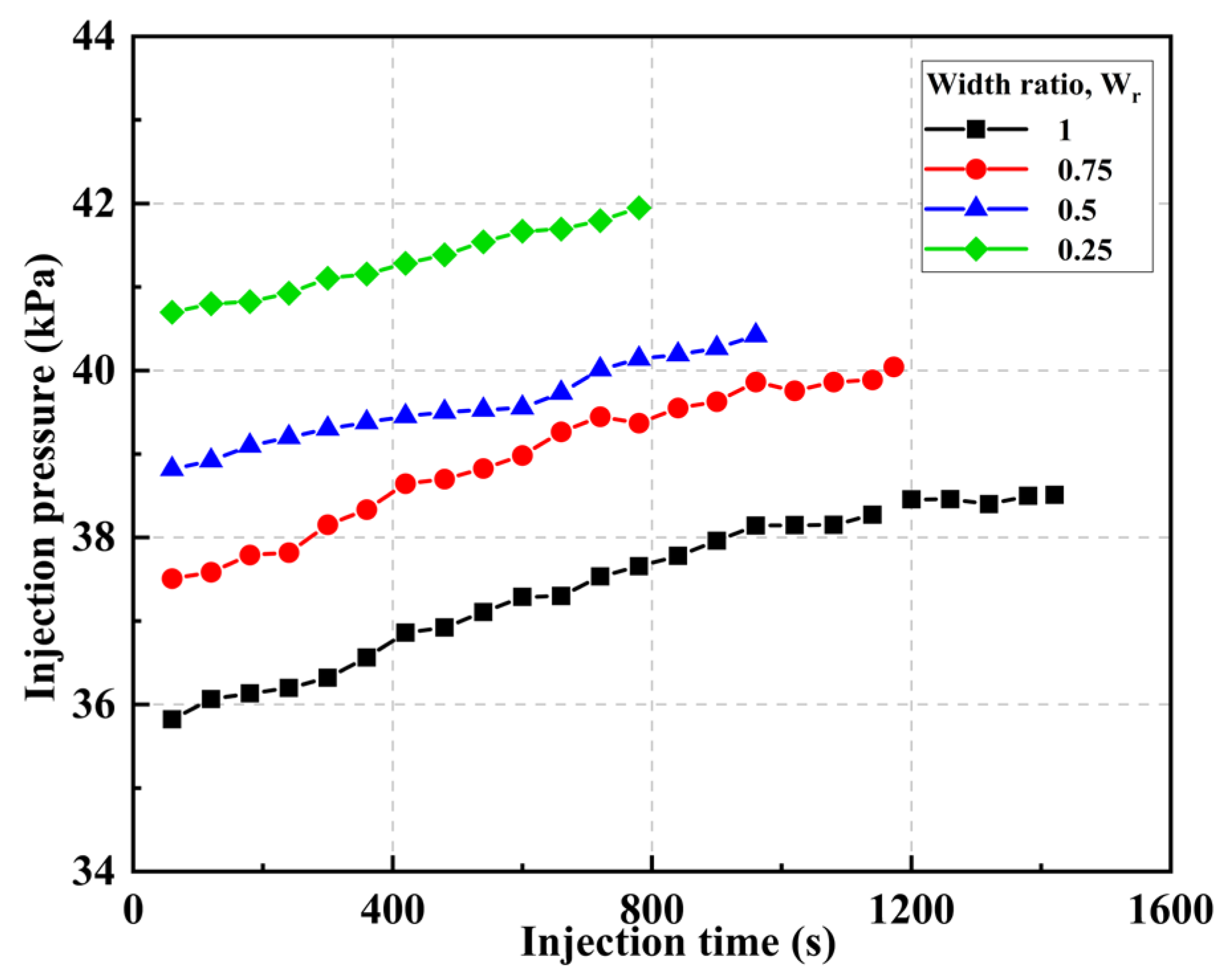 - A reduction in fracture width significantly increases the injection pressure while decreasing the sand bed area. In naturally fractured reservoirs, this leads to higher operational pressures during fracturing. Increasing fluid viscosity or reducing the injection rate decreases injection pressure and particle transport.