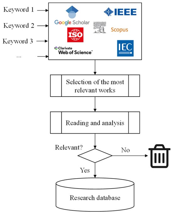 As illustrated in Figure 1, the process begins with the selection of relevant keywords, which are then utilized in various specialized search engines for scientific articles. The most pertinent works are selected for review, while those not directly relevant are discarded. Works of direct interest to this article are retained for review. The initial search explored the broad concept of digital twins, then gradually focused on literature specific to FPSO process plant applications.