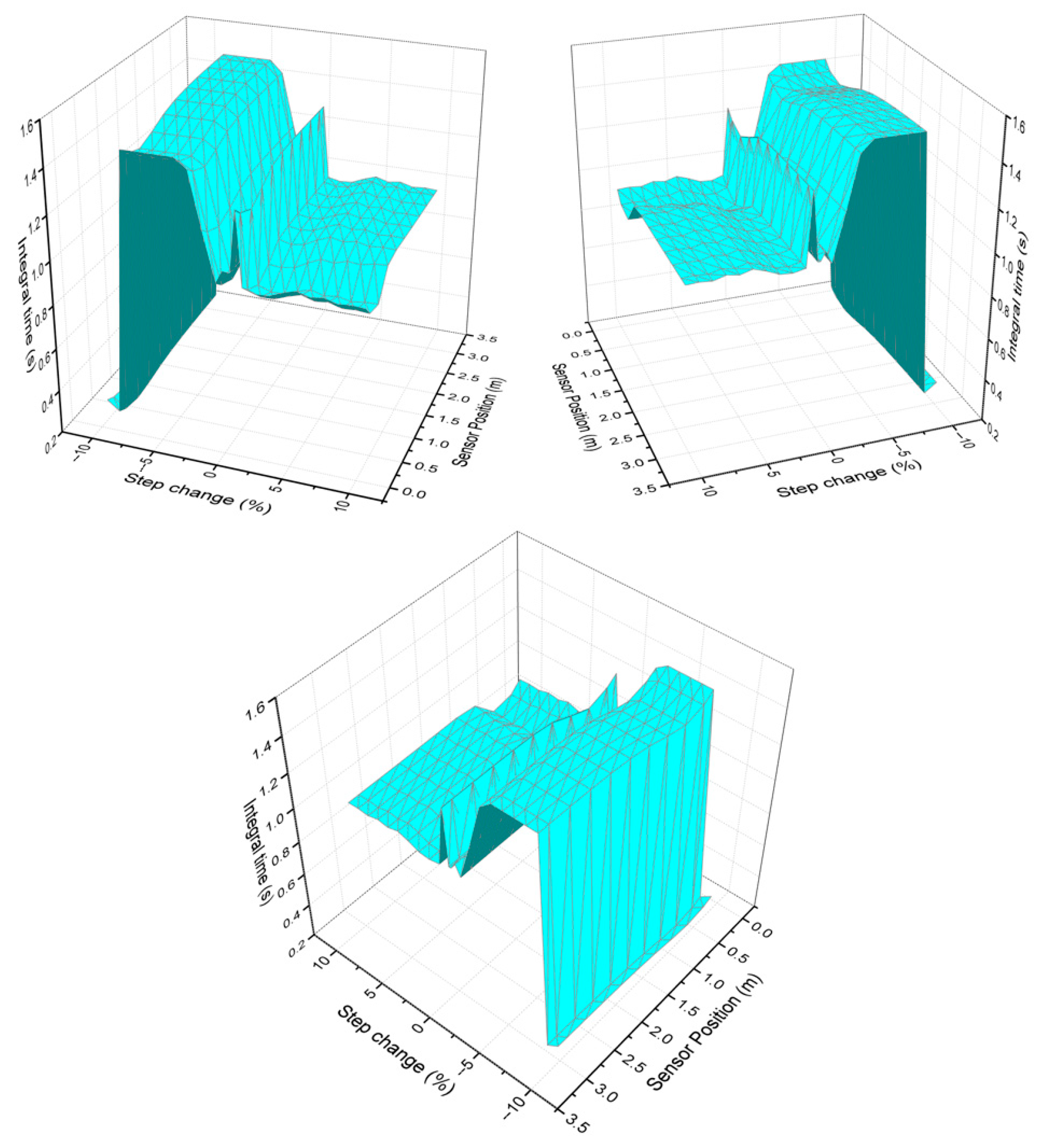 Figure 4. Integral time behavior as the step change and sensor position vary from different perspectives.